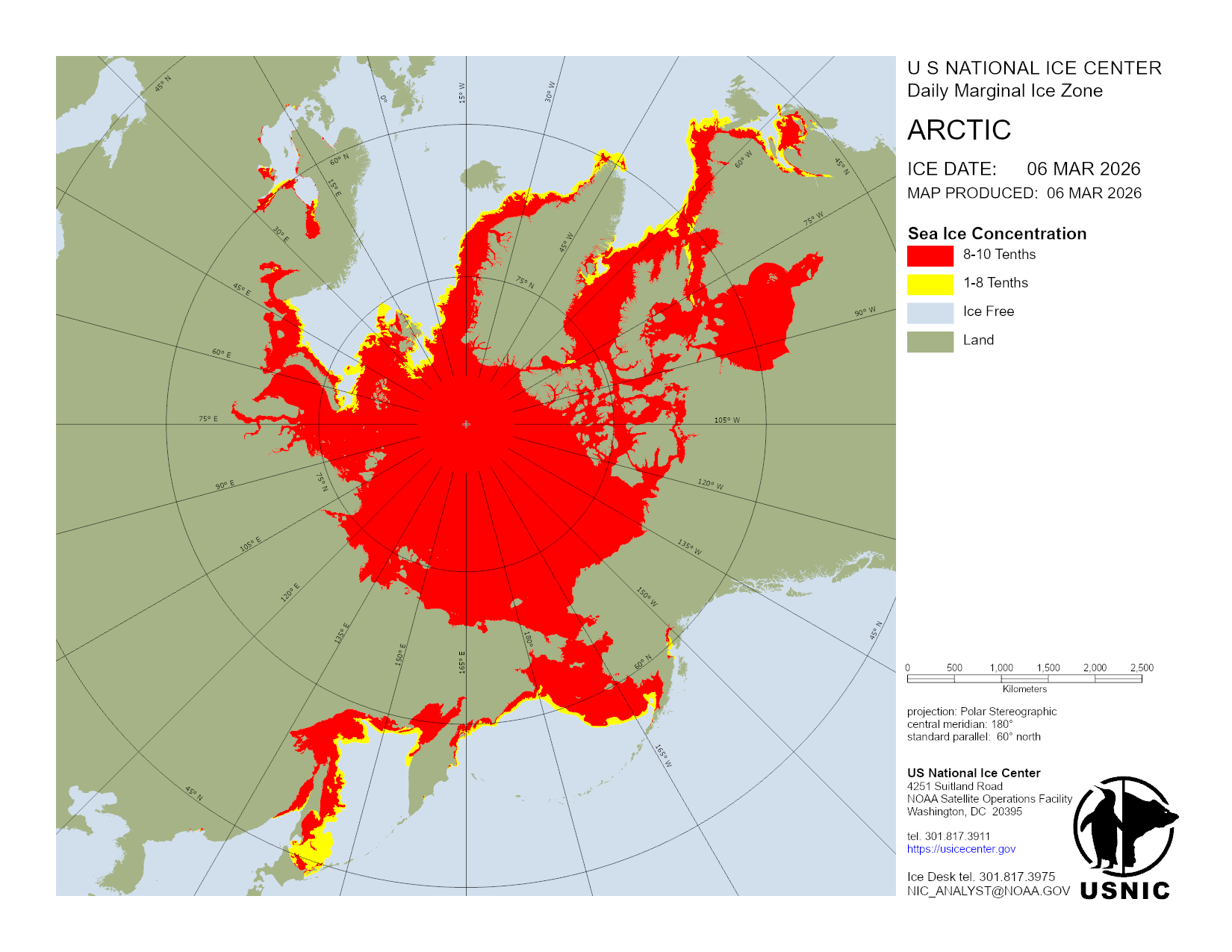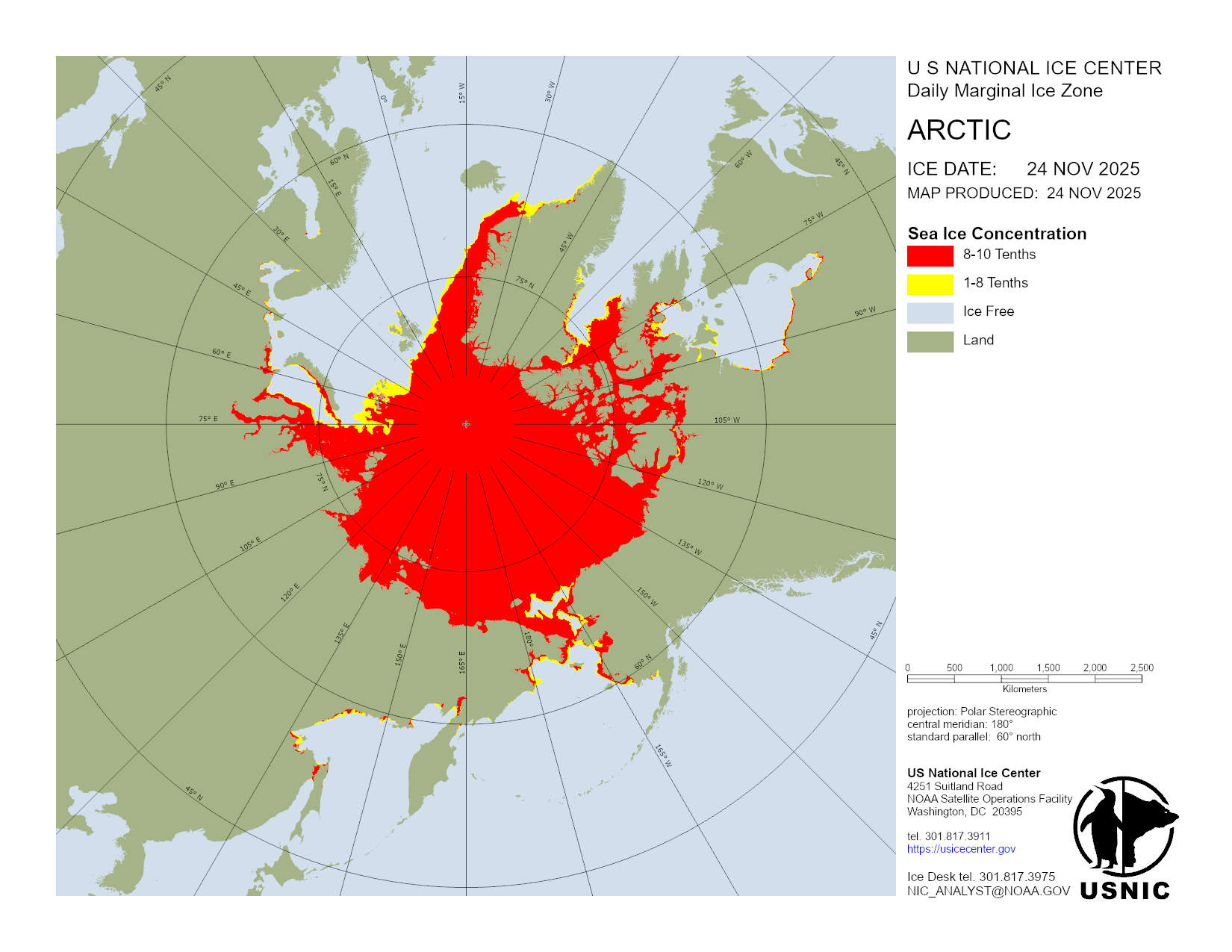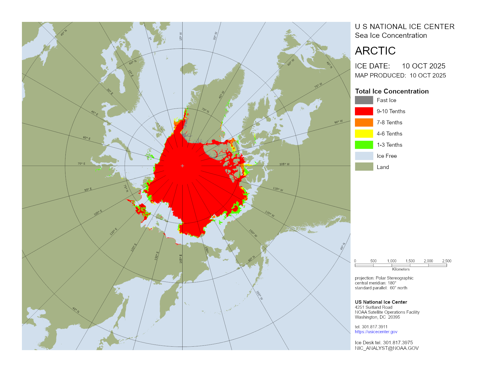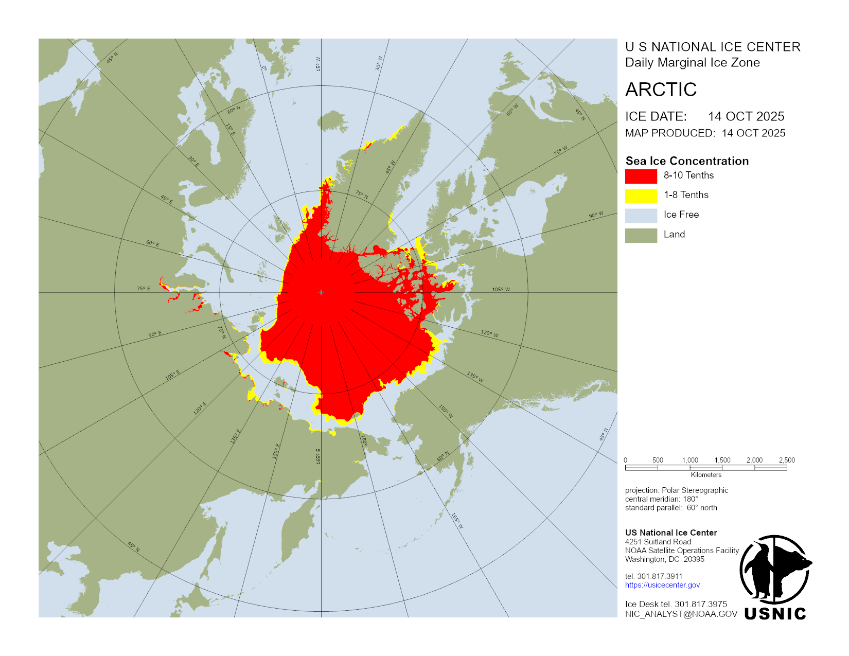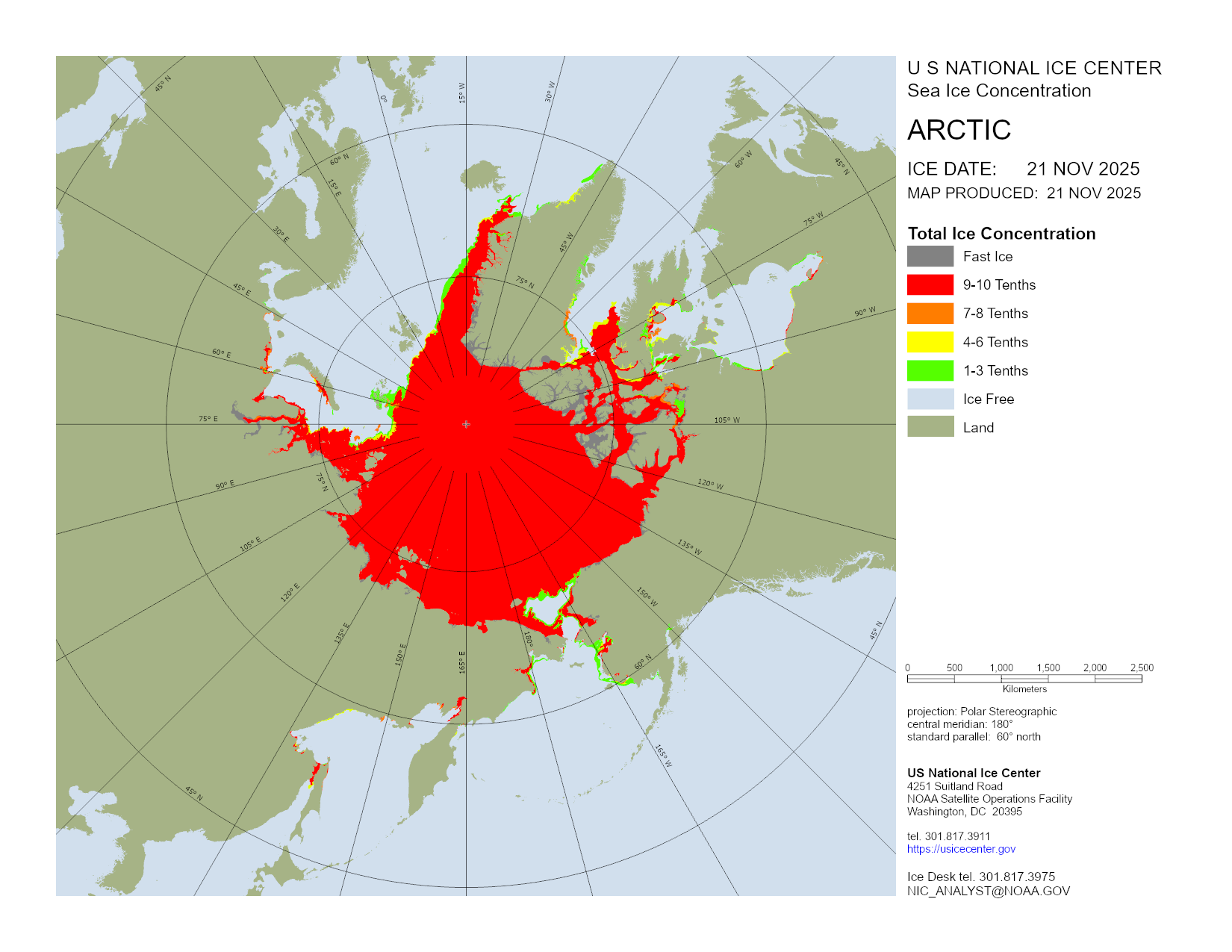 U.S. National Ice Center develops and hosts various products in regions across the globe with main focus on those areas consisting of ice and snow. This section organizes products done on a regular basis and are updated daily. For a detailed description of the products, please visit our Product Catalog.