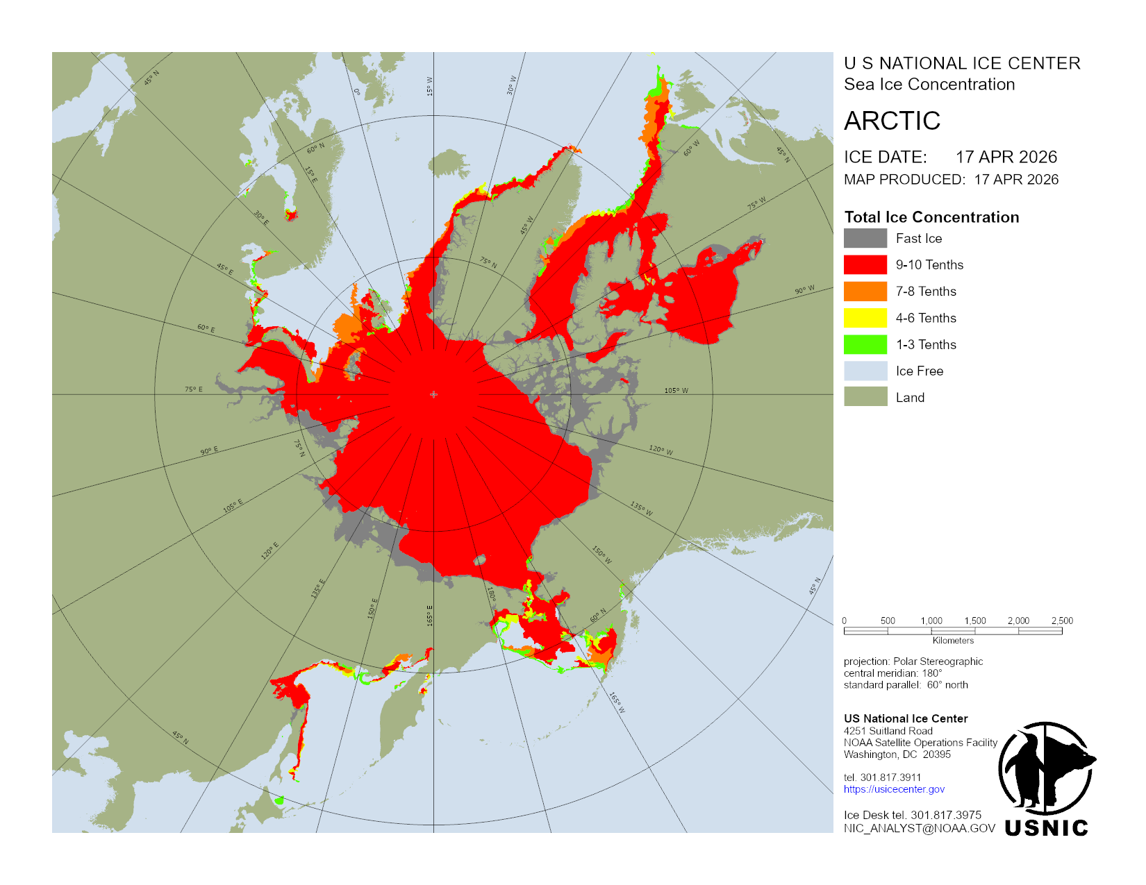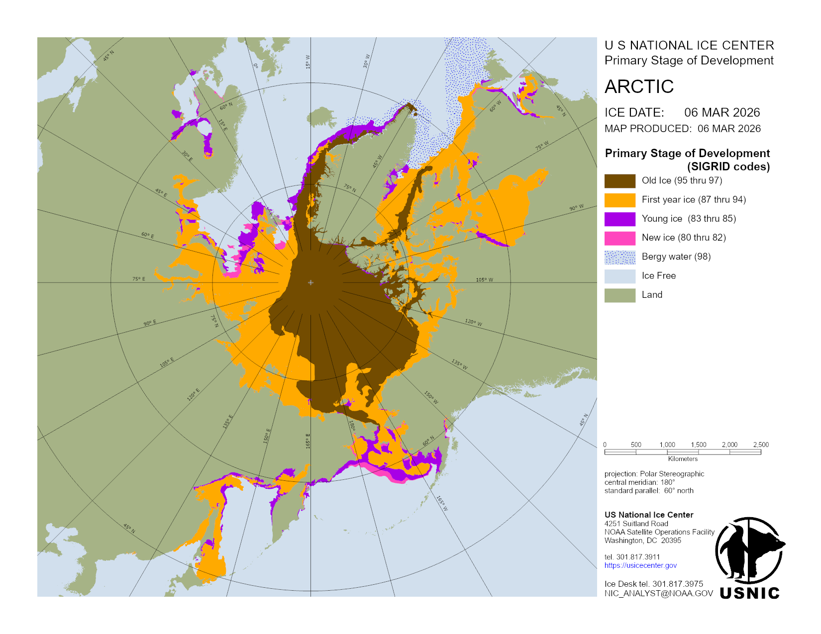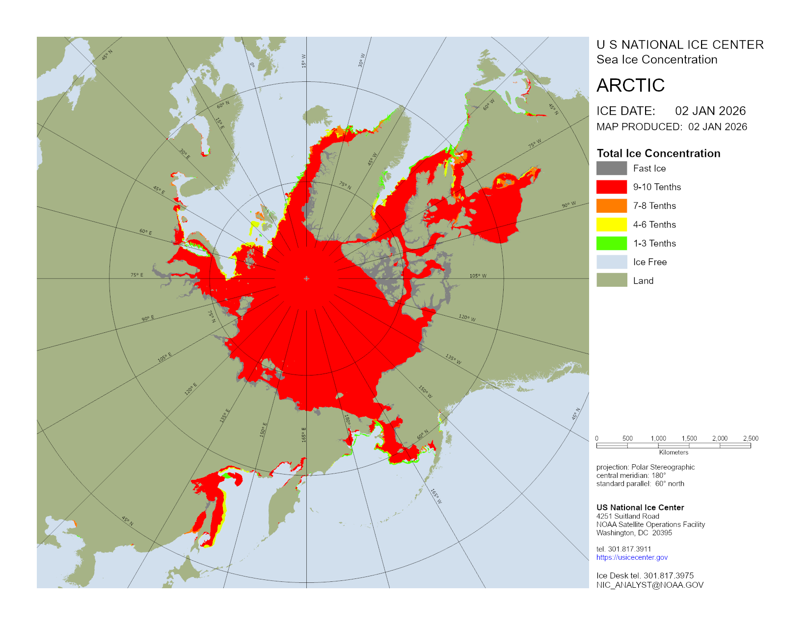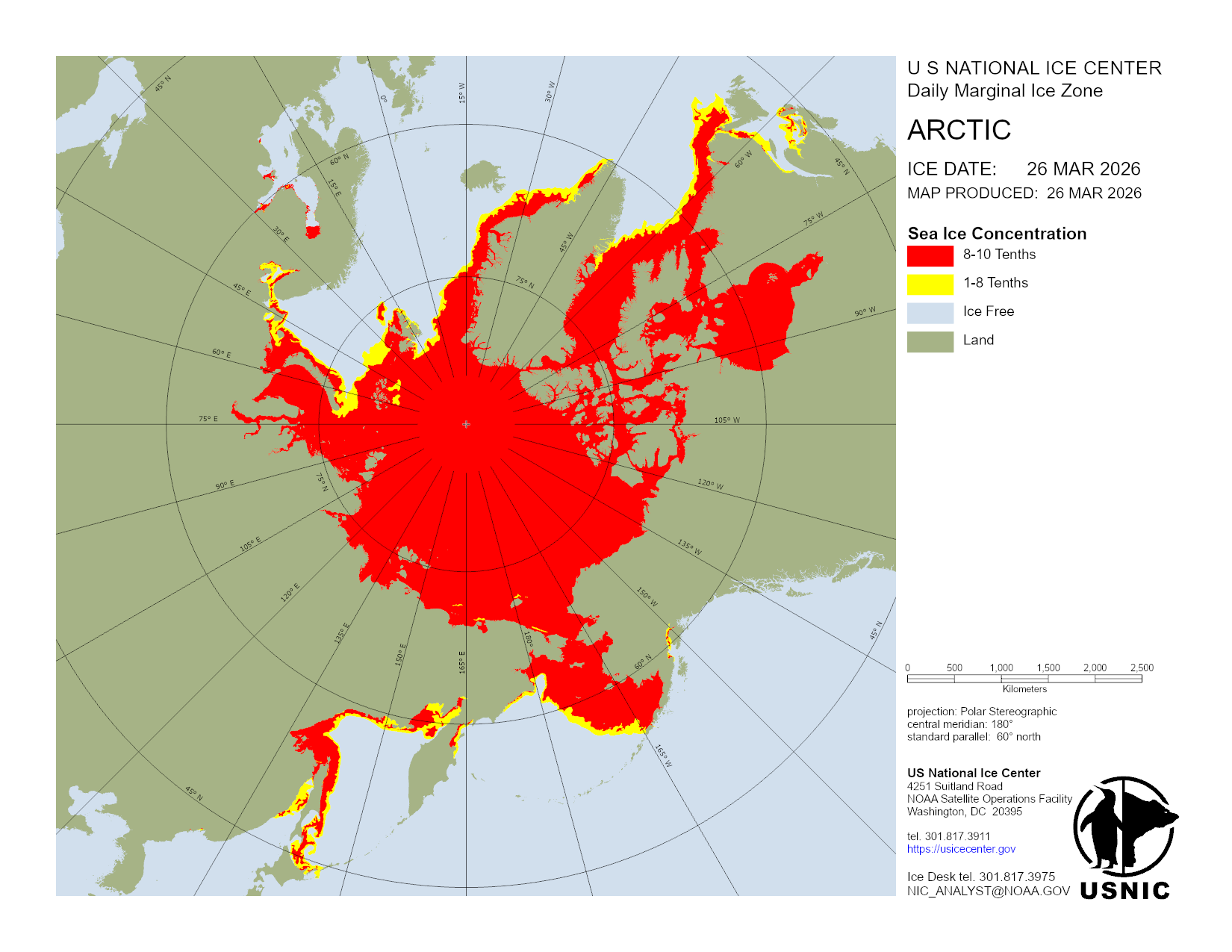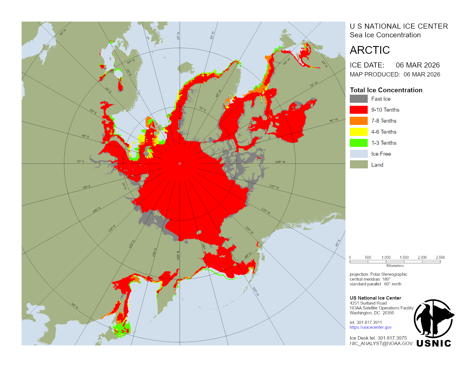 U.S. National Ice Center develops and hosts various products in regions across the globe with main focus on those areas consisting of ice and snow. This section organizes products done on a regular basis and are updated daily. For a detailed description of the products, please visit our Product Catalog.