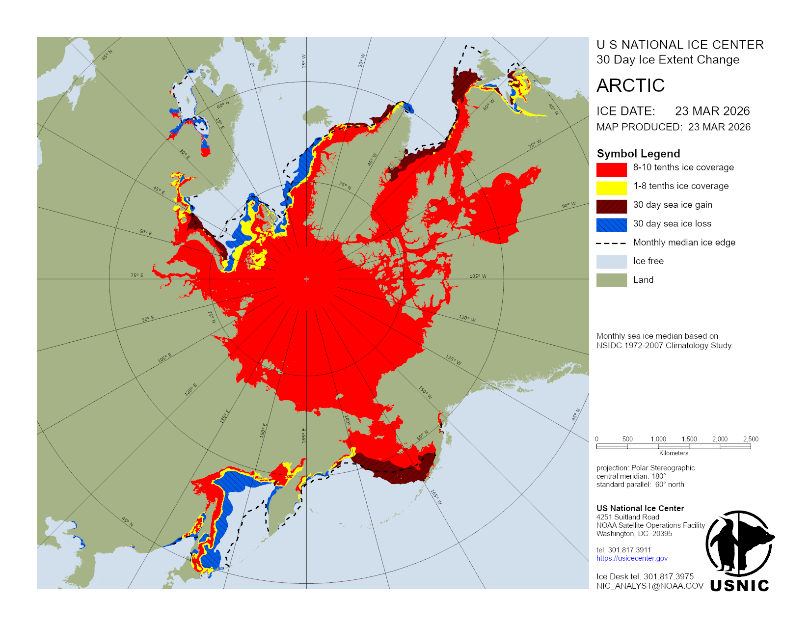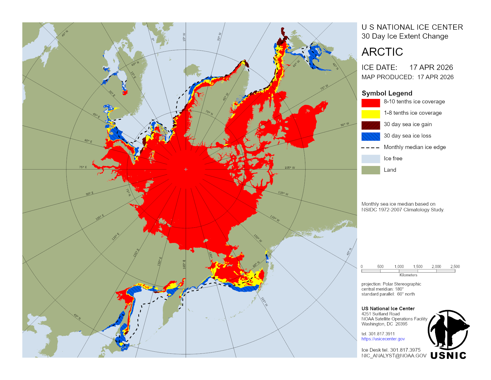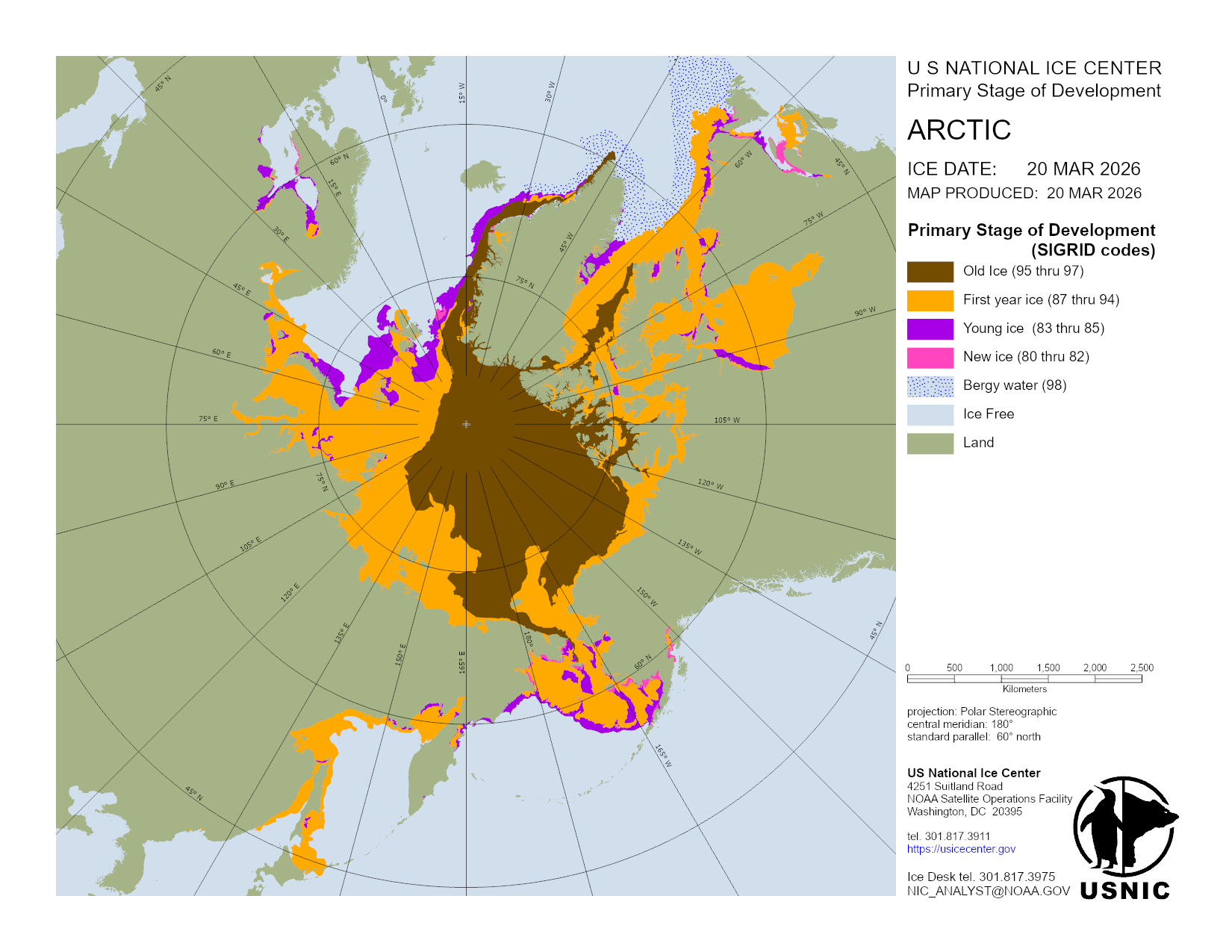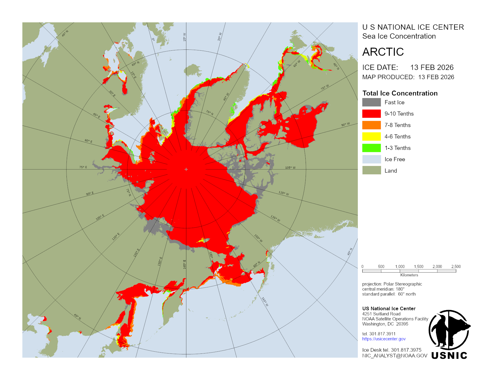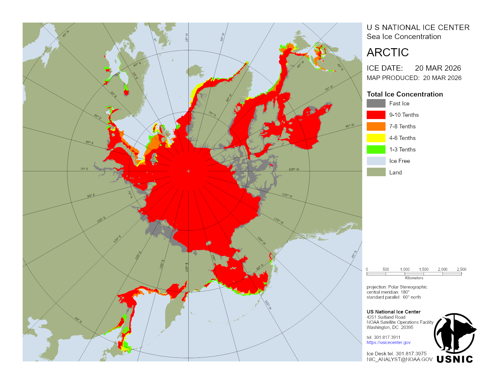 U.S. National Ice Center develops and hosts various products in regions across the globe with main focus on those areas consisting of ice and snow. This section organizes products done on a regular basis and are updated daily. For a detailed description of the products, please visit our Product Catalog.