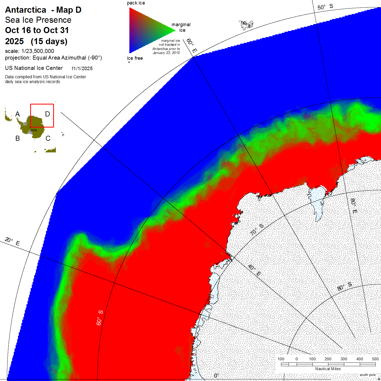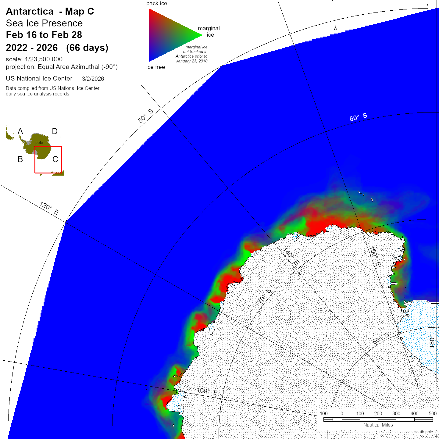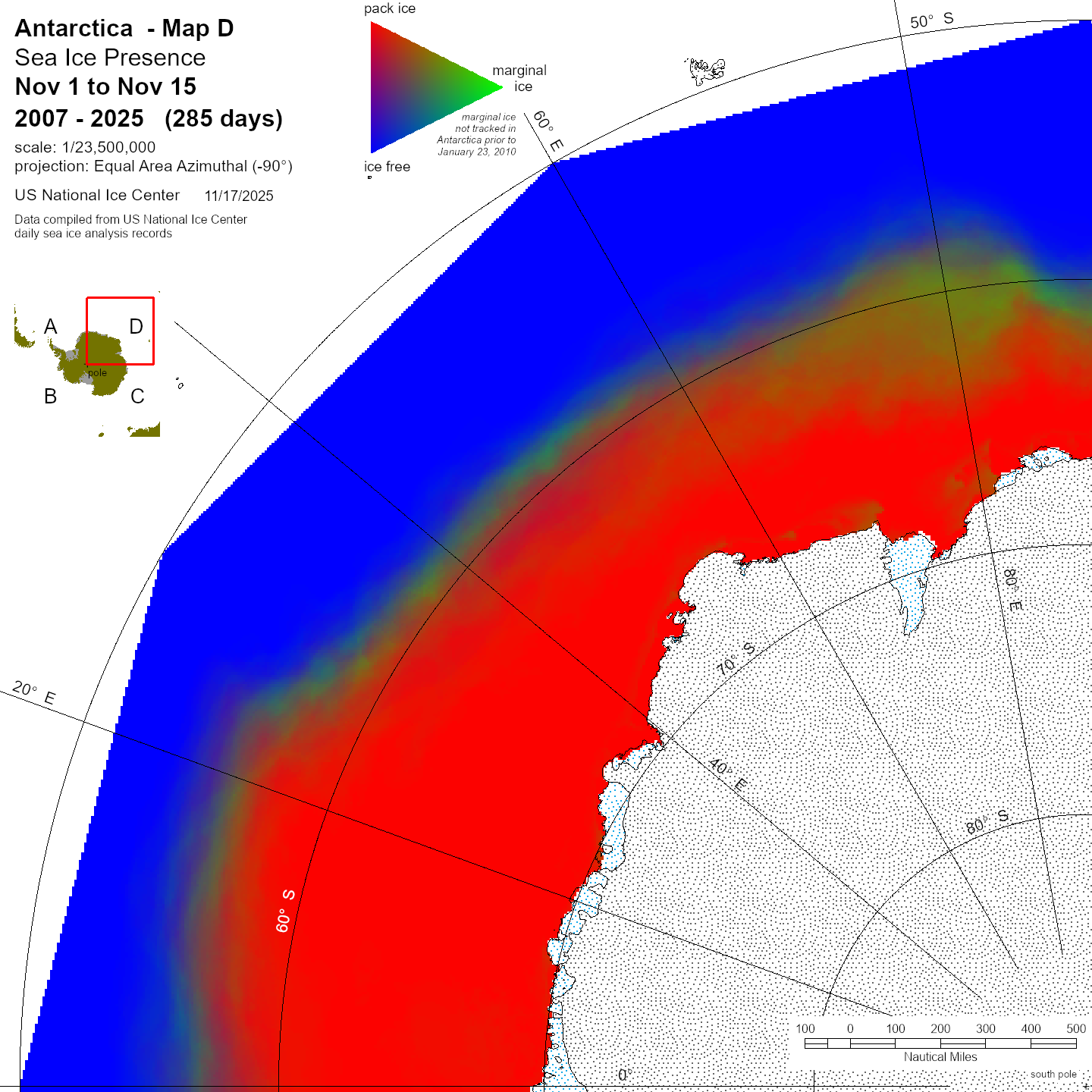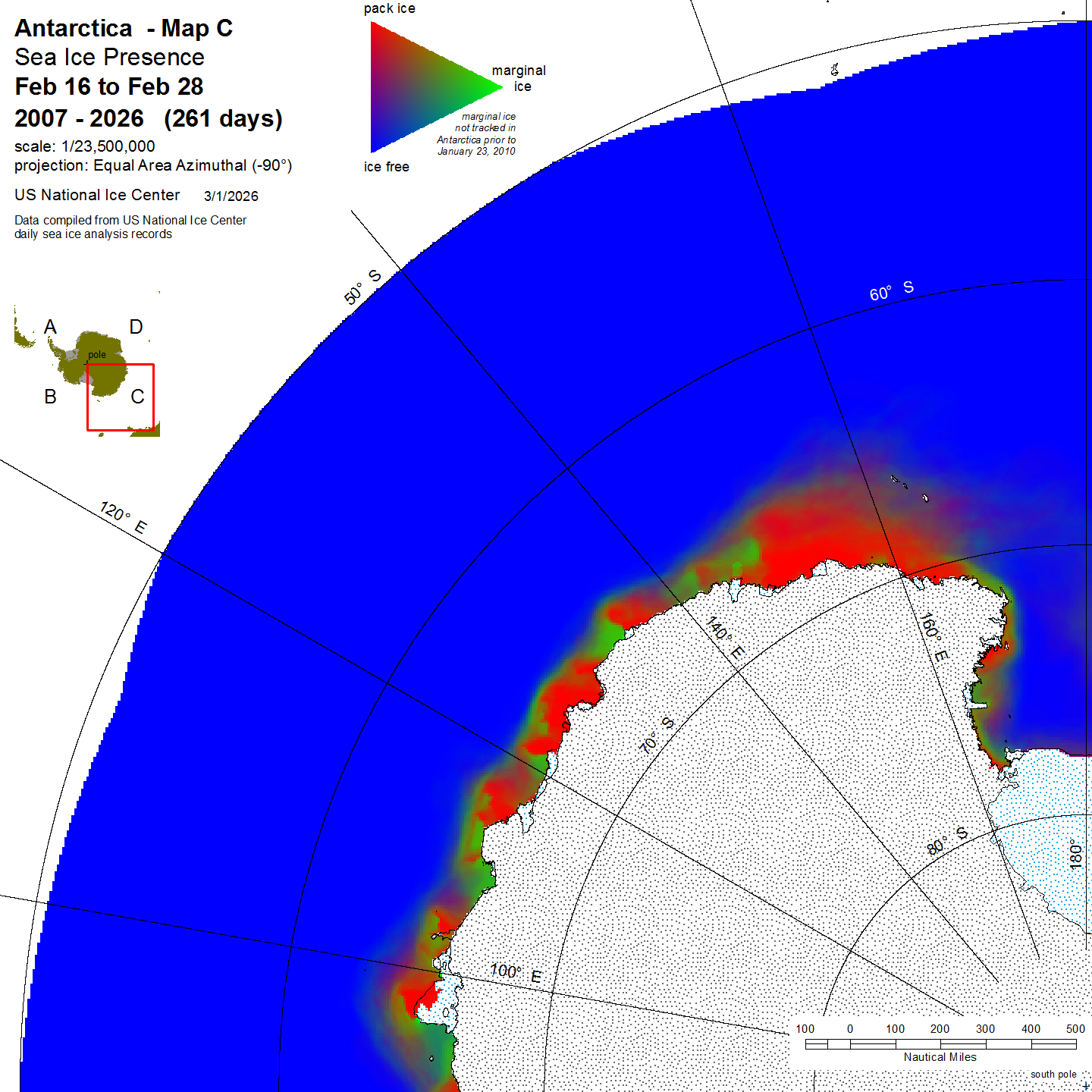 KMZ file that covers ice information contained throughout the entire Antarctic region. For color legend, please click here.
