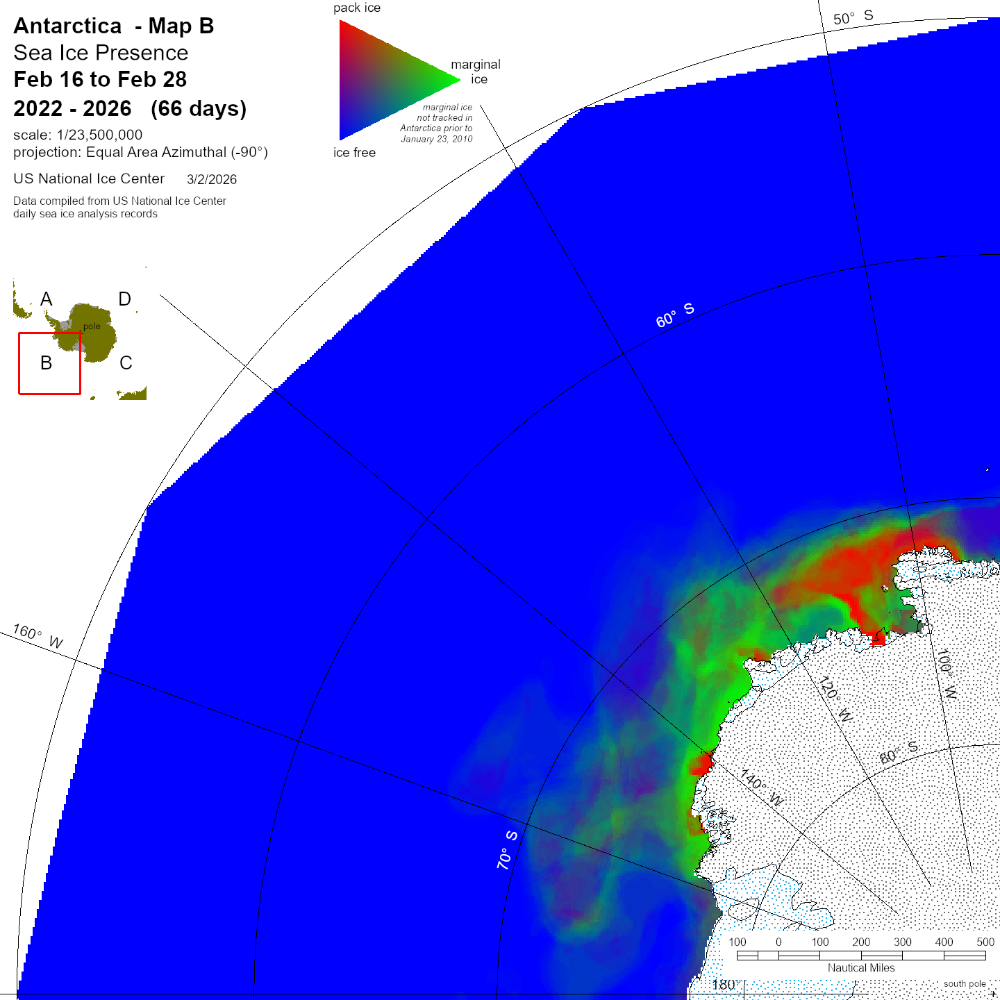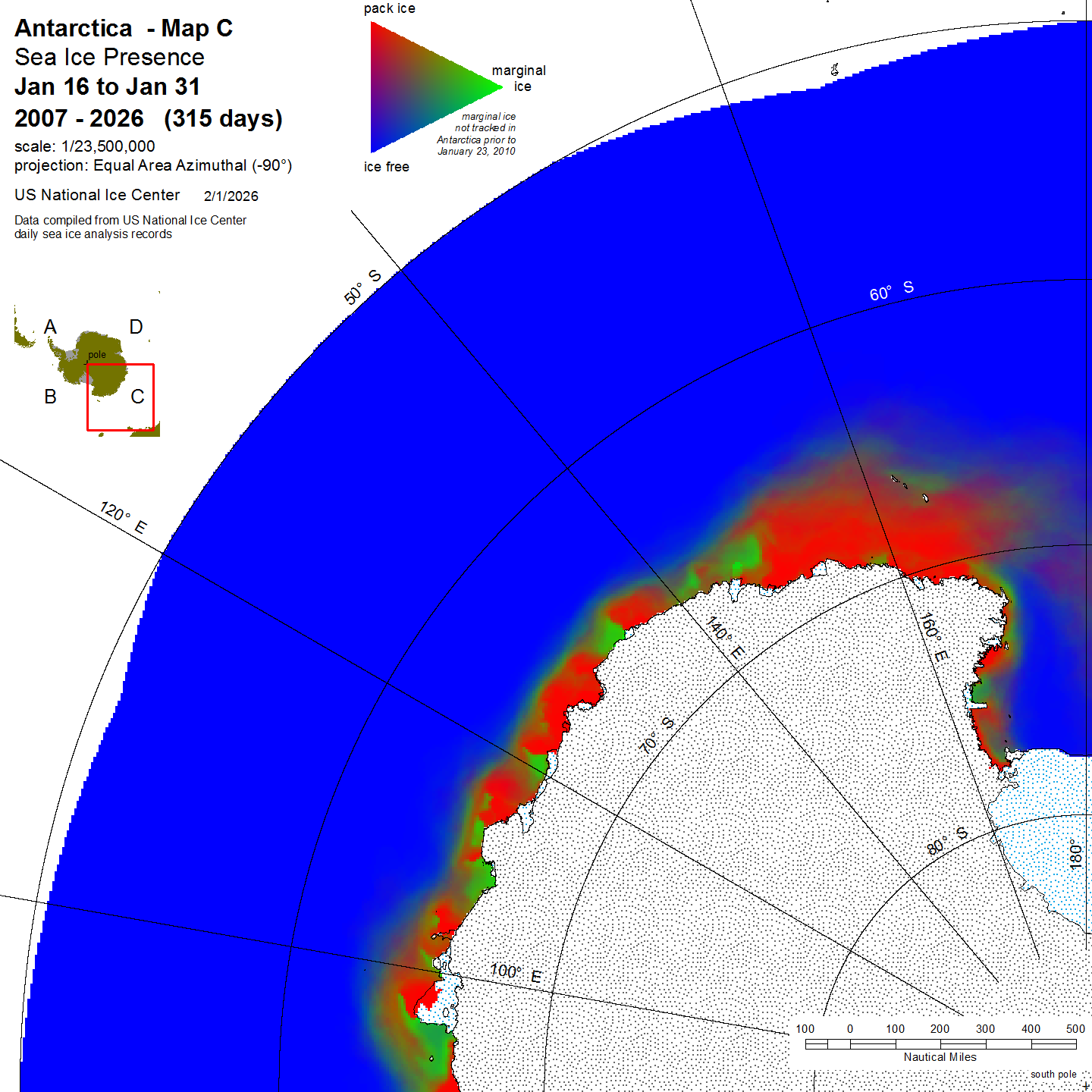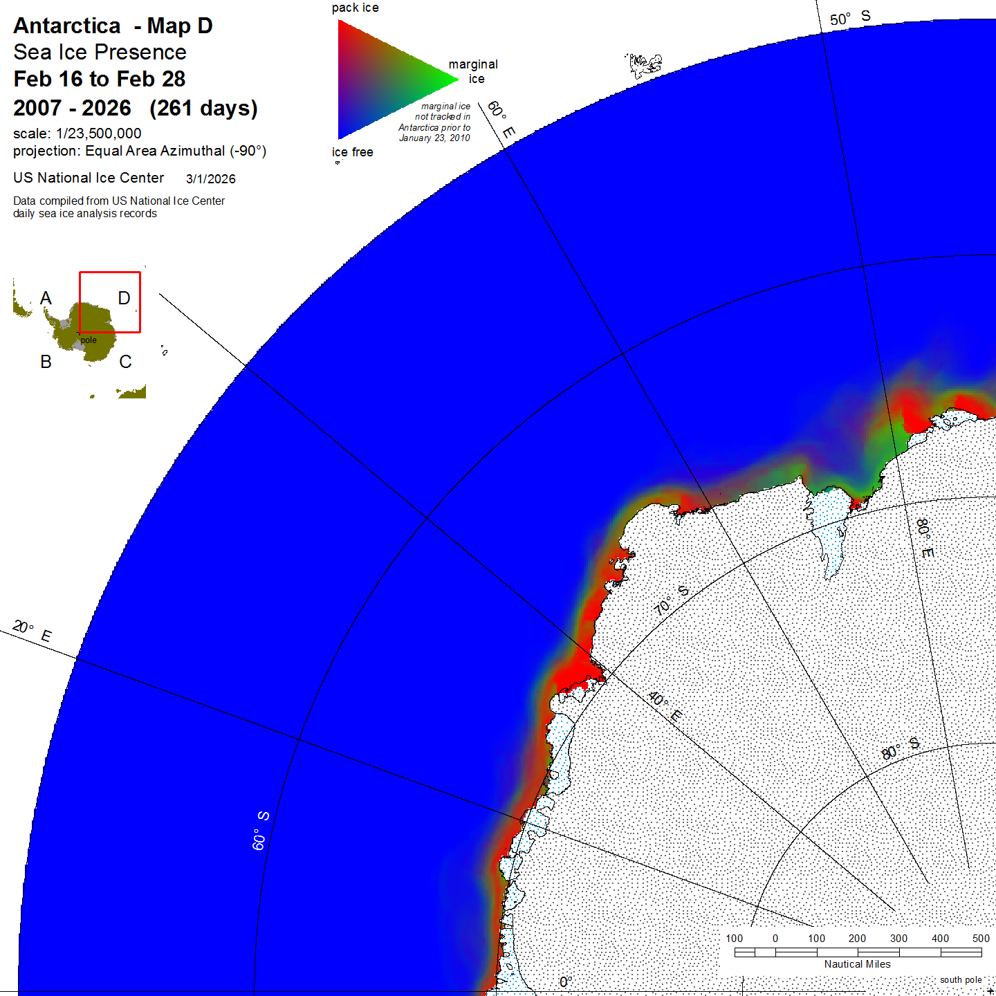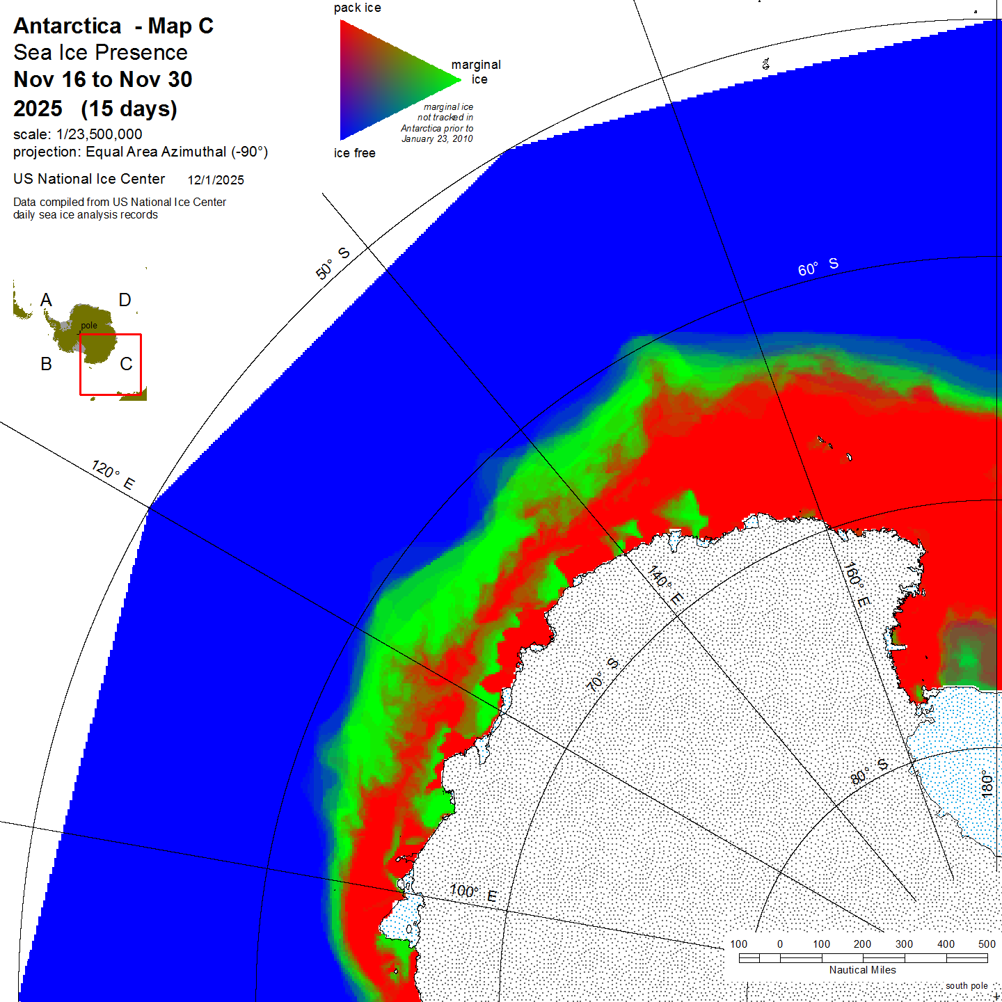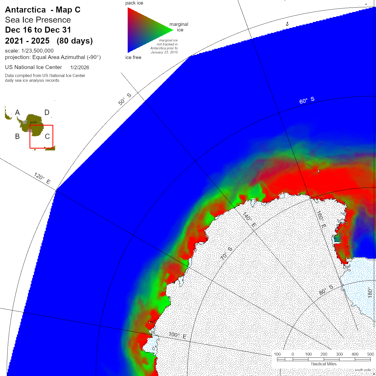 KMZ file that covers ice information contained throughout the entire Antarctic region. For color legend, please click here.