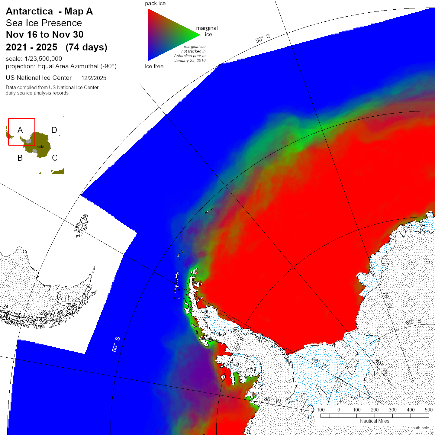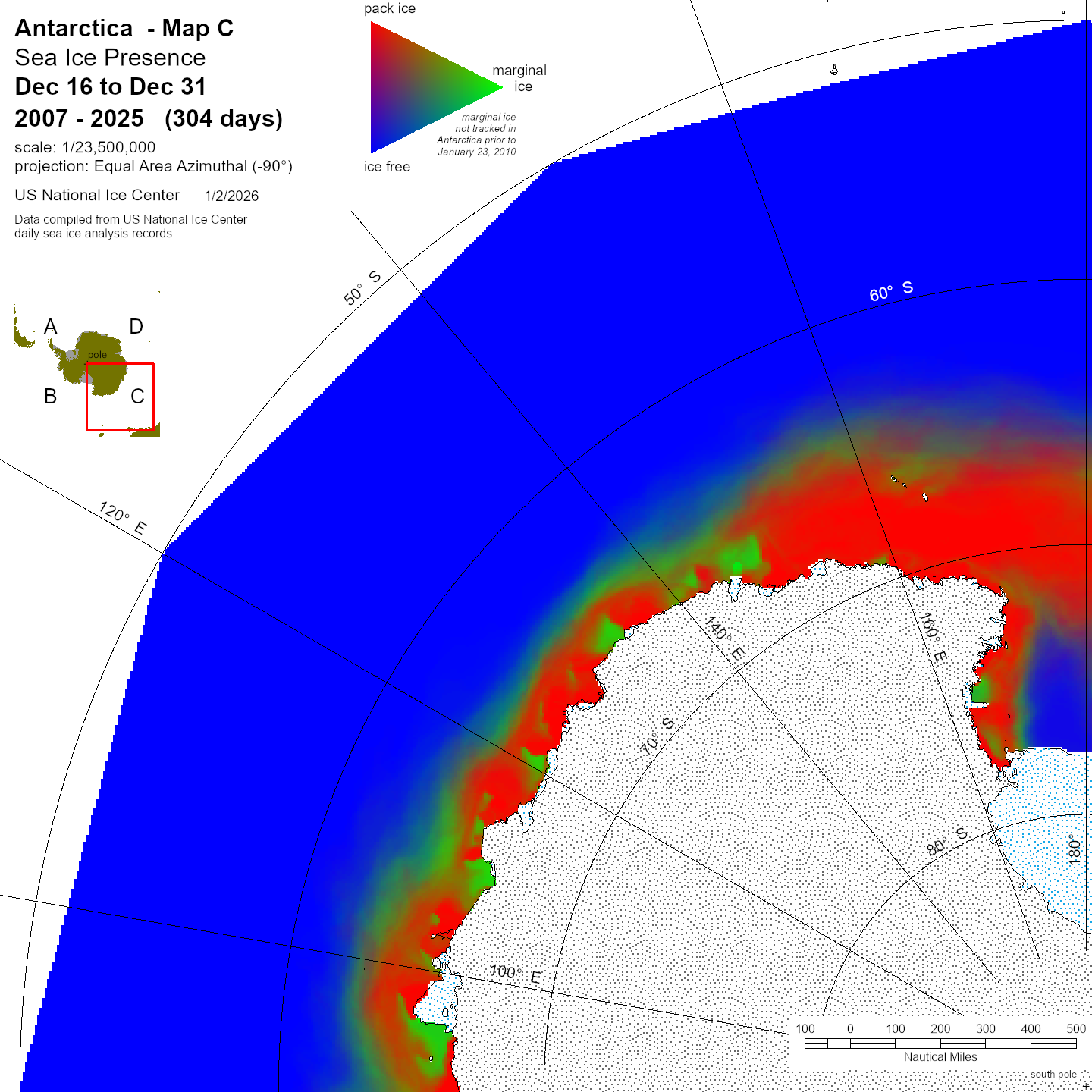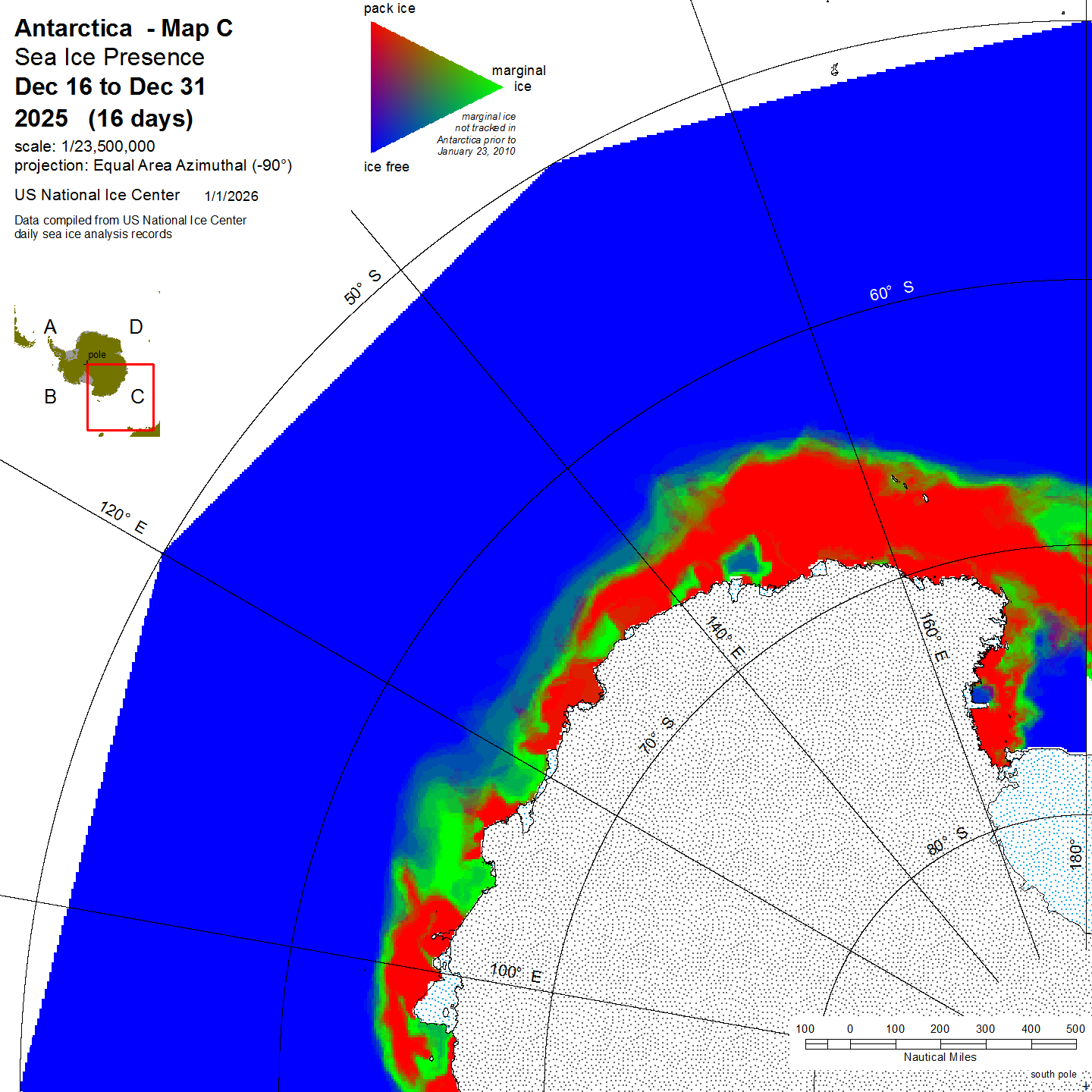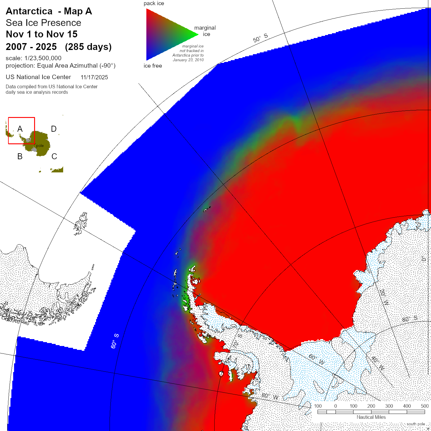 KMZ file that covers ice information contained throughout the entire Antarctic region. For color legend, please click here.