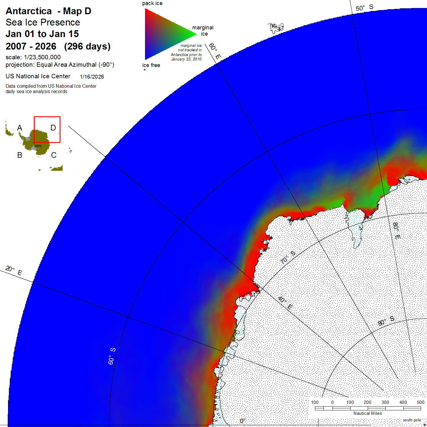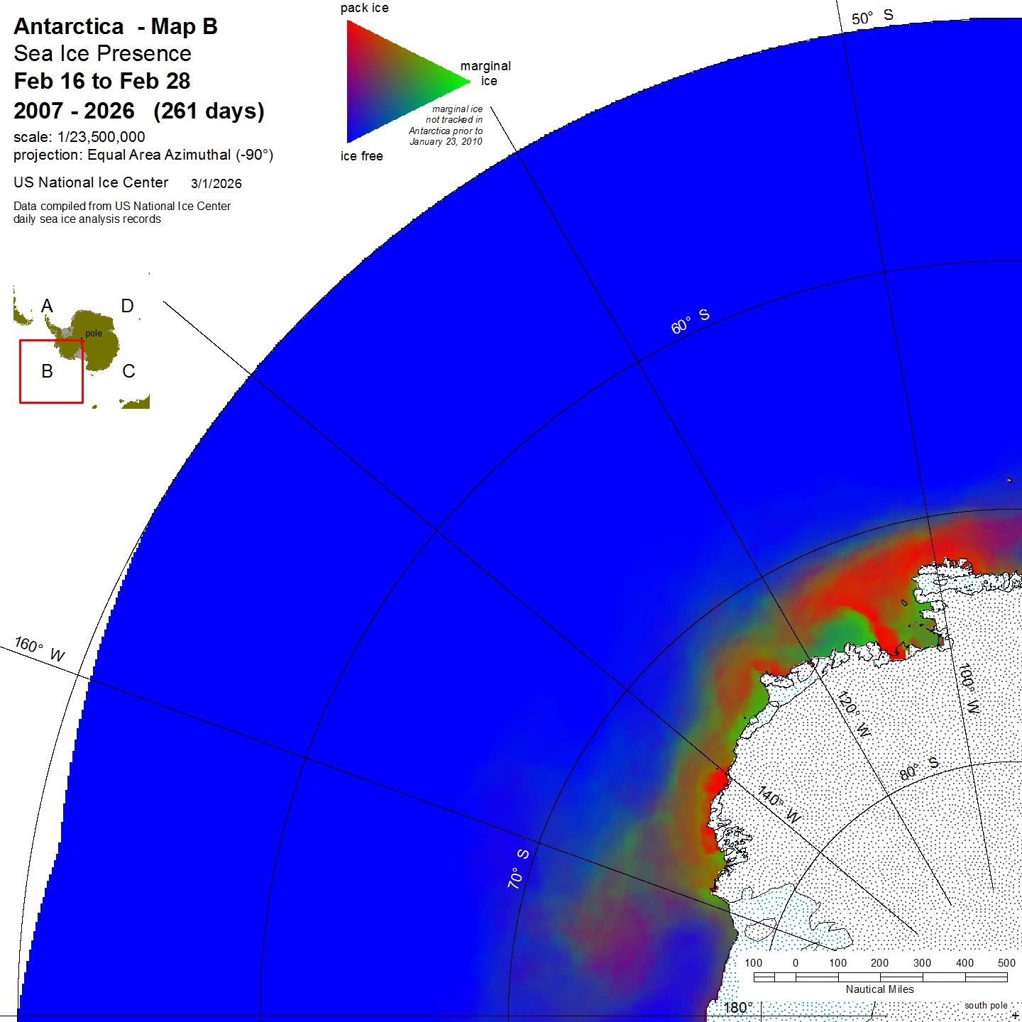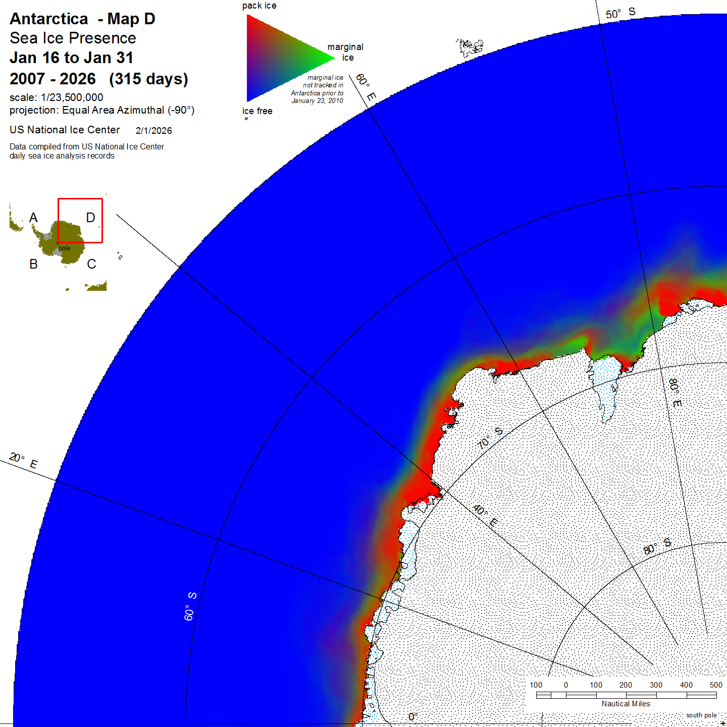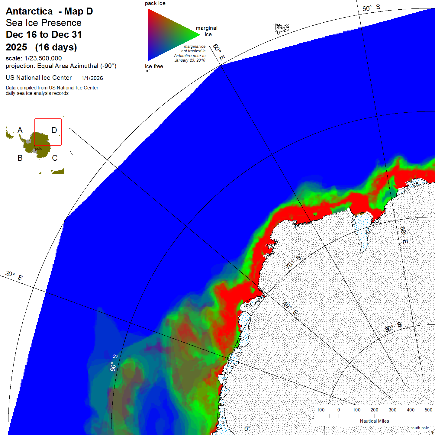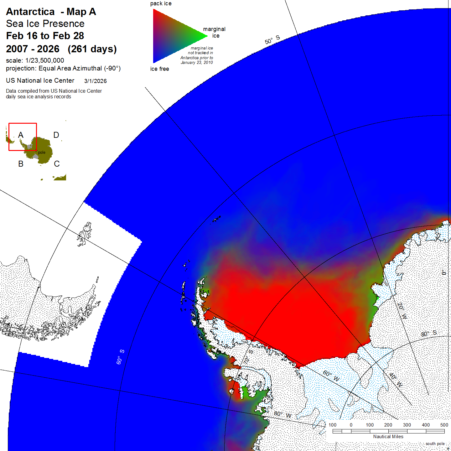 KMZ file that covers ice information contained throughout the entire Antarctic region. For color legend, please click here.