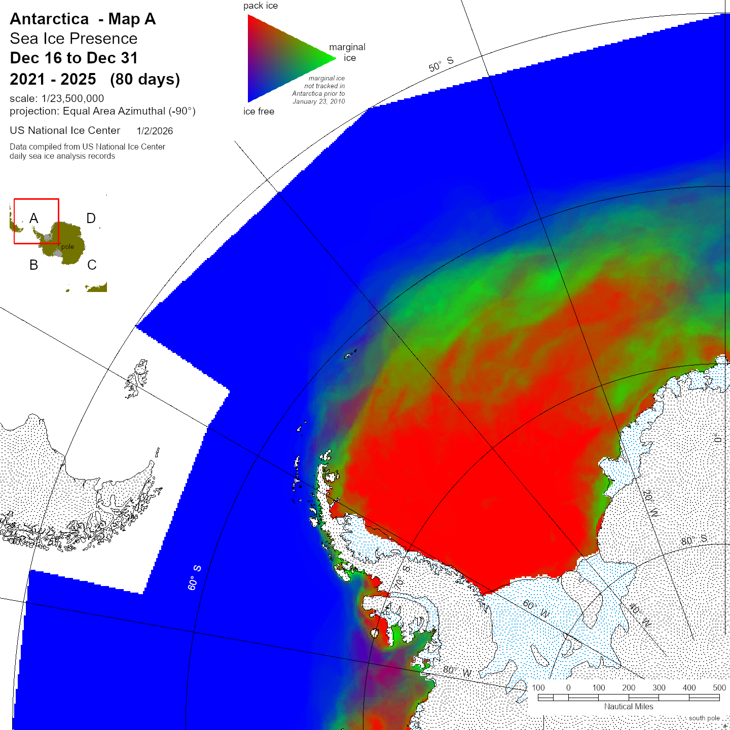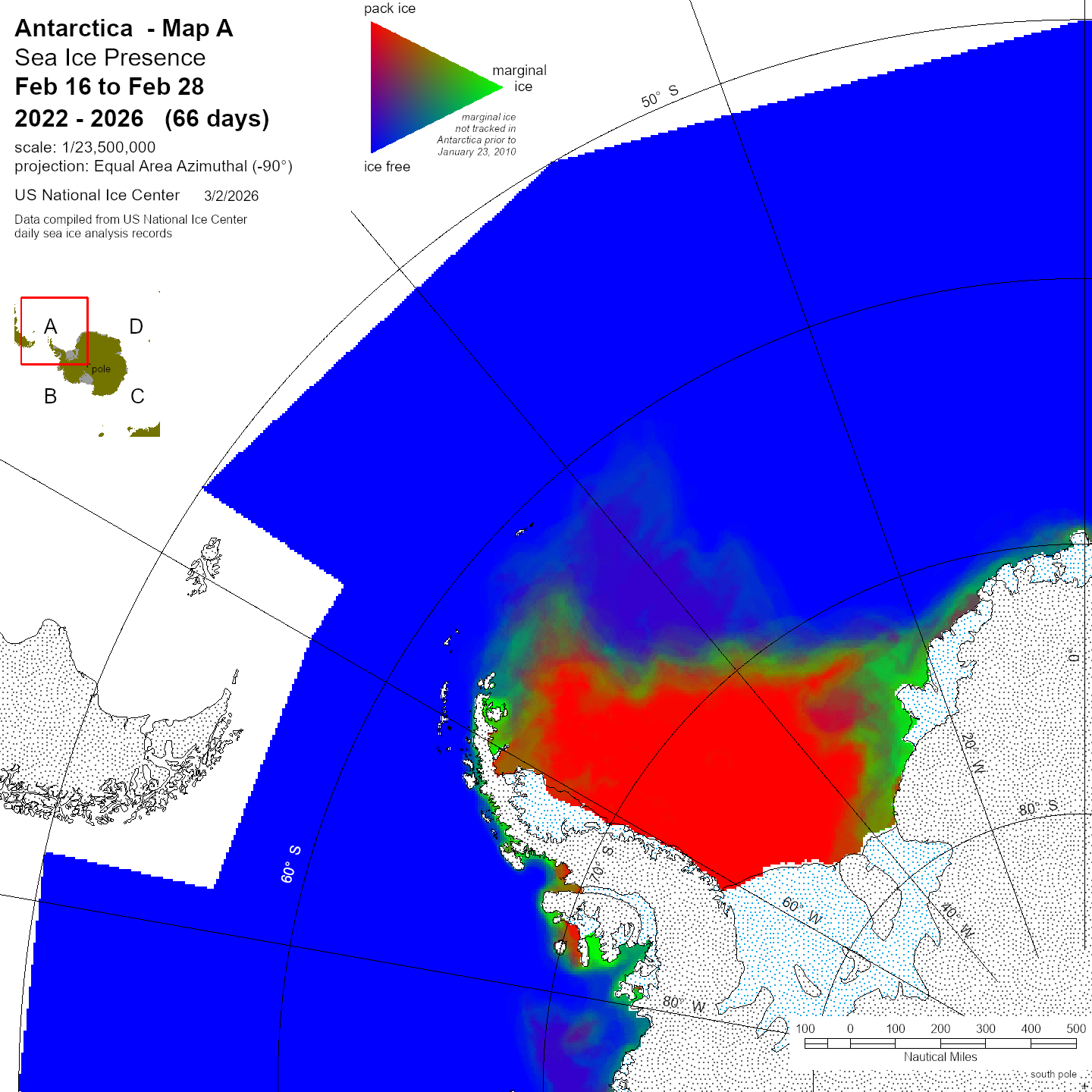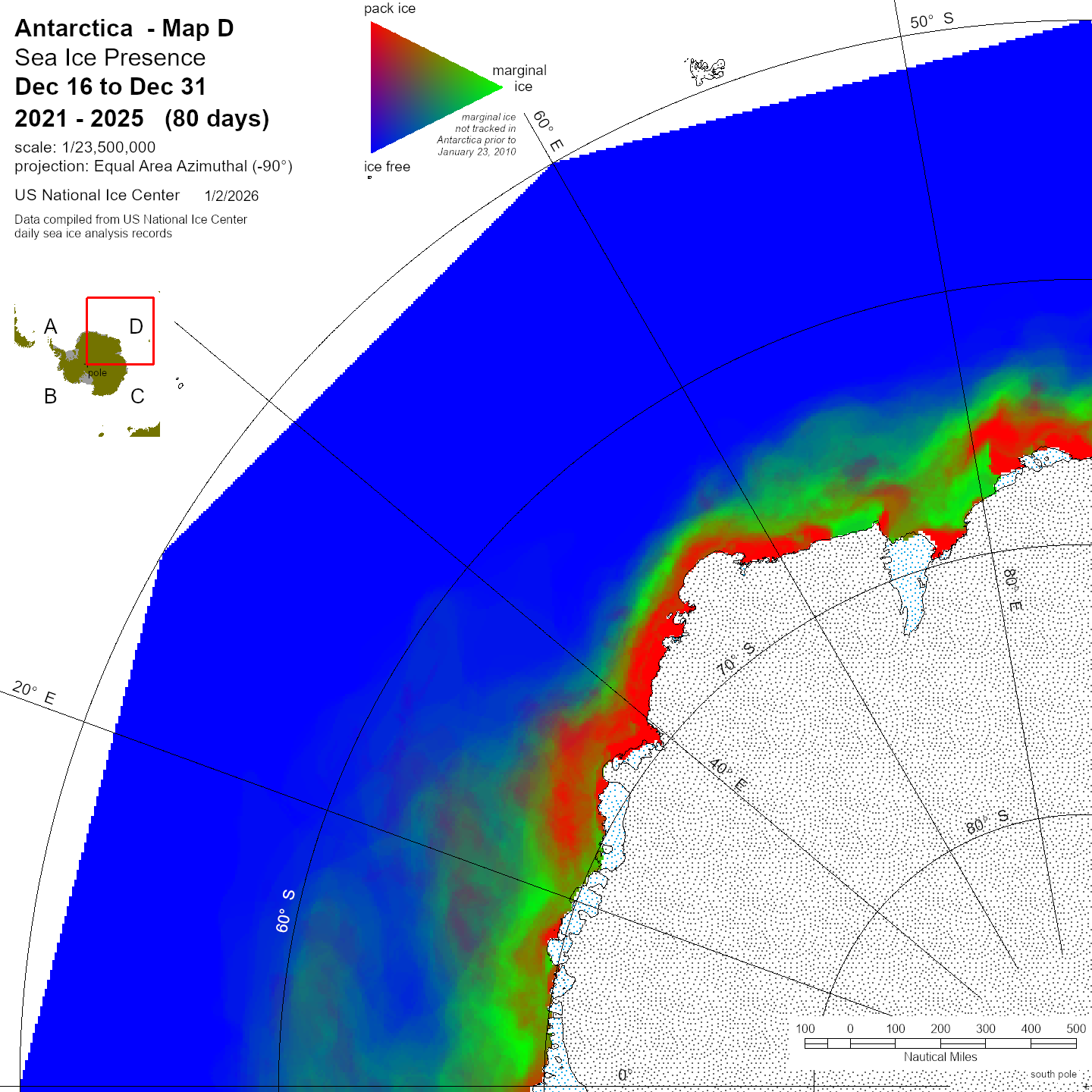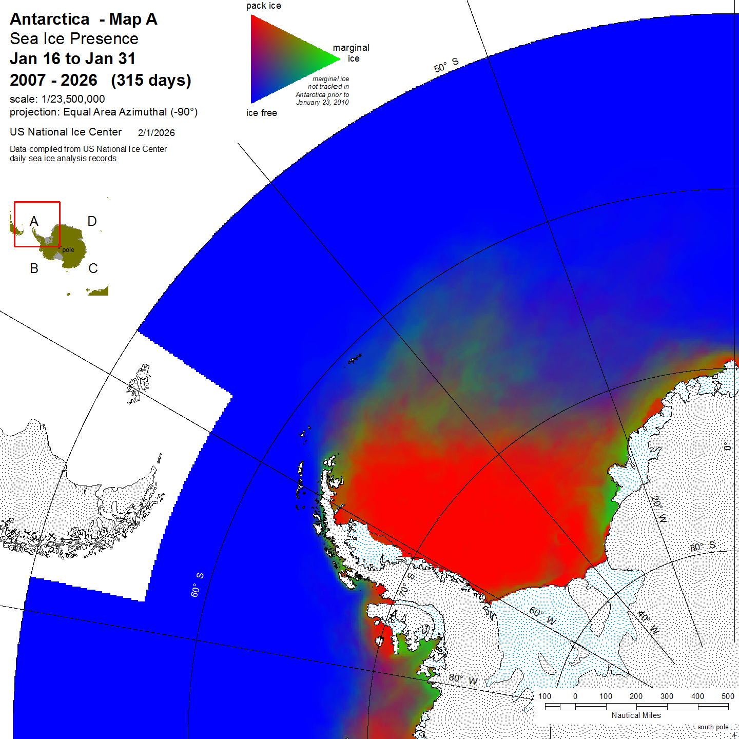 KMZ file that covers ice information contained throughout the entire Antarctic region. For color legend, please click here.