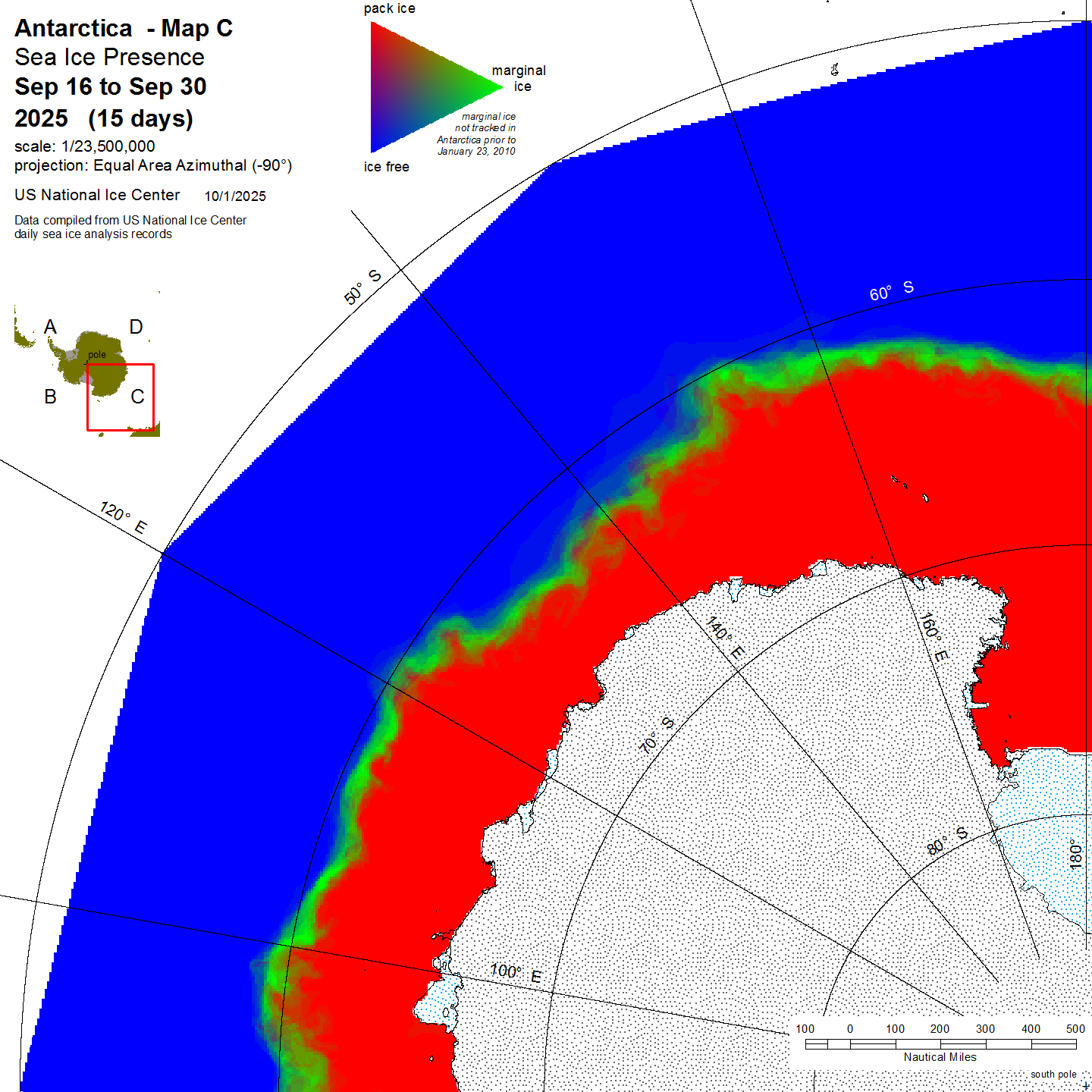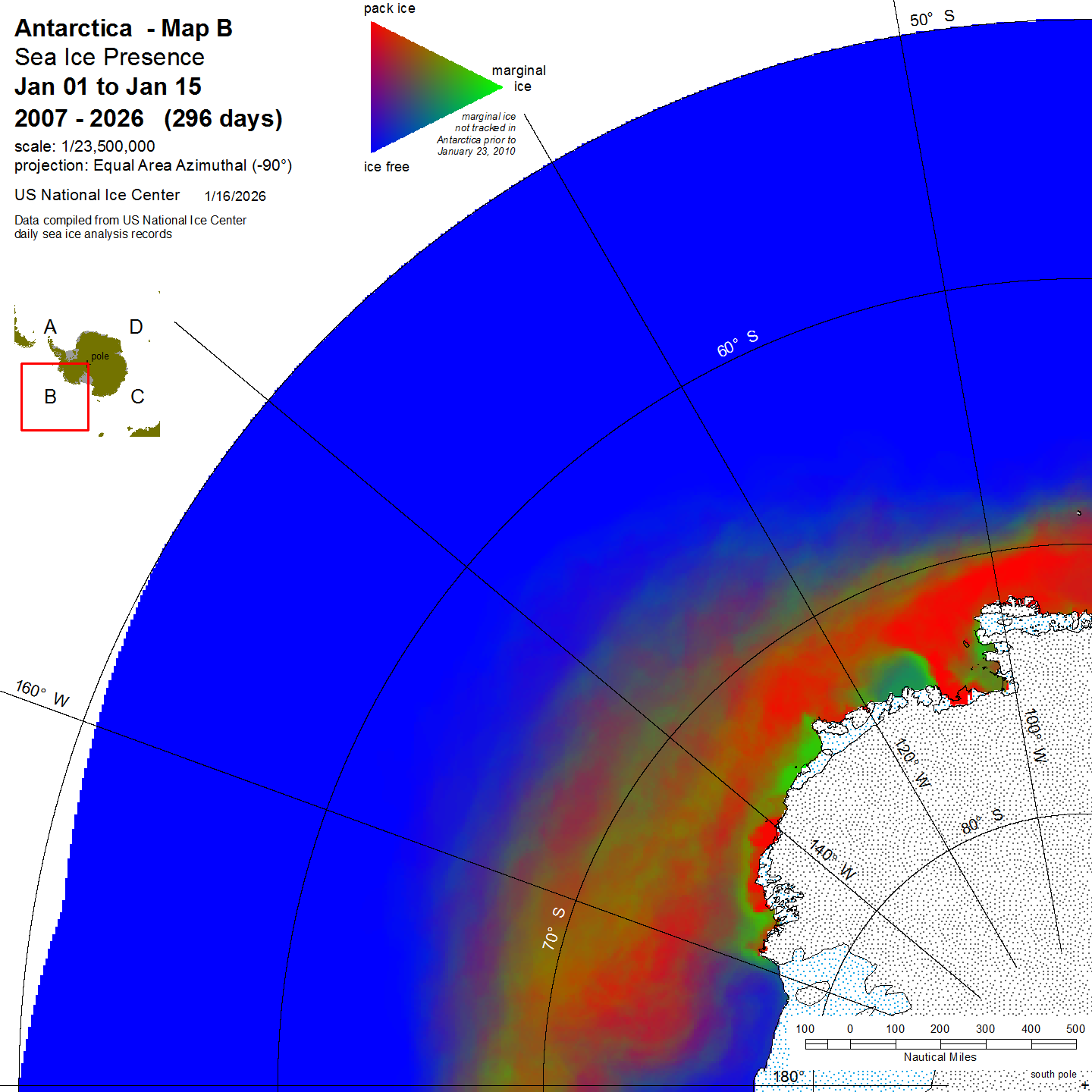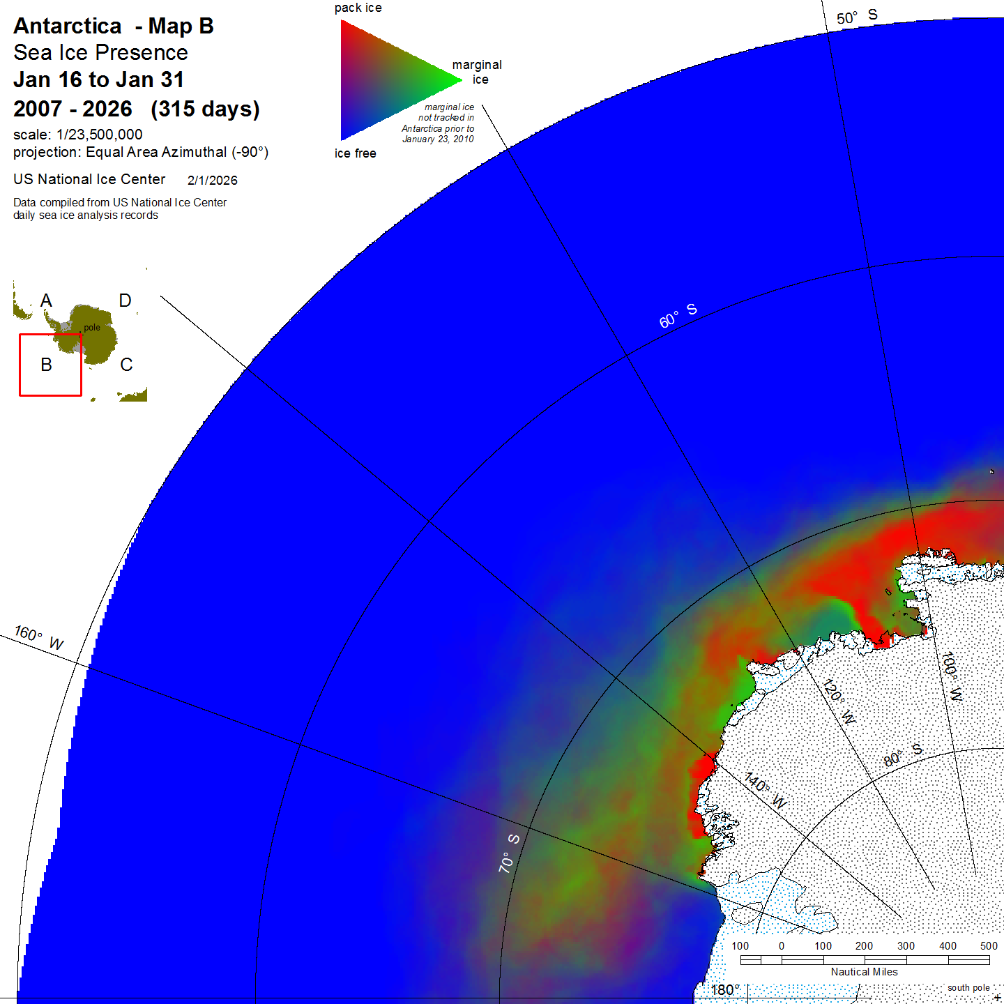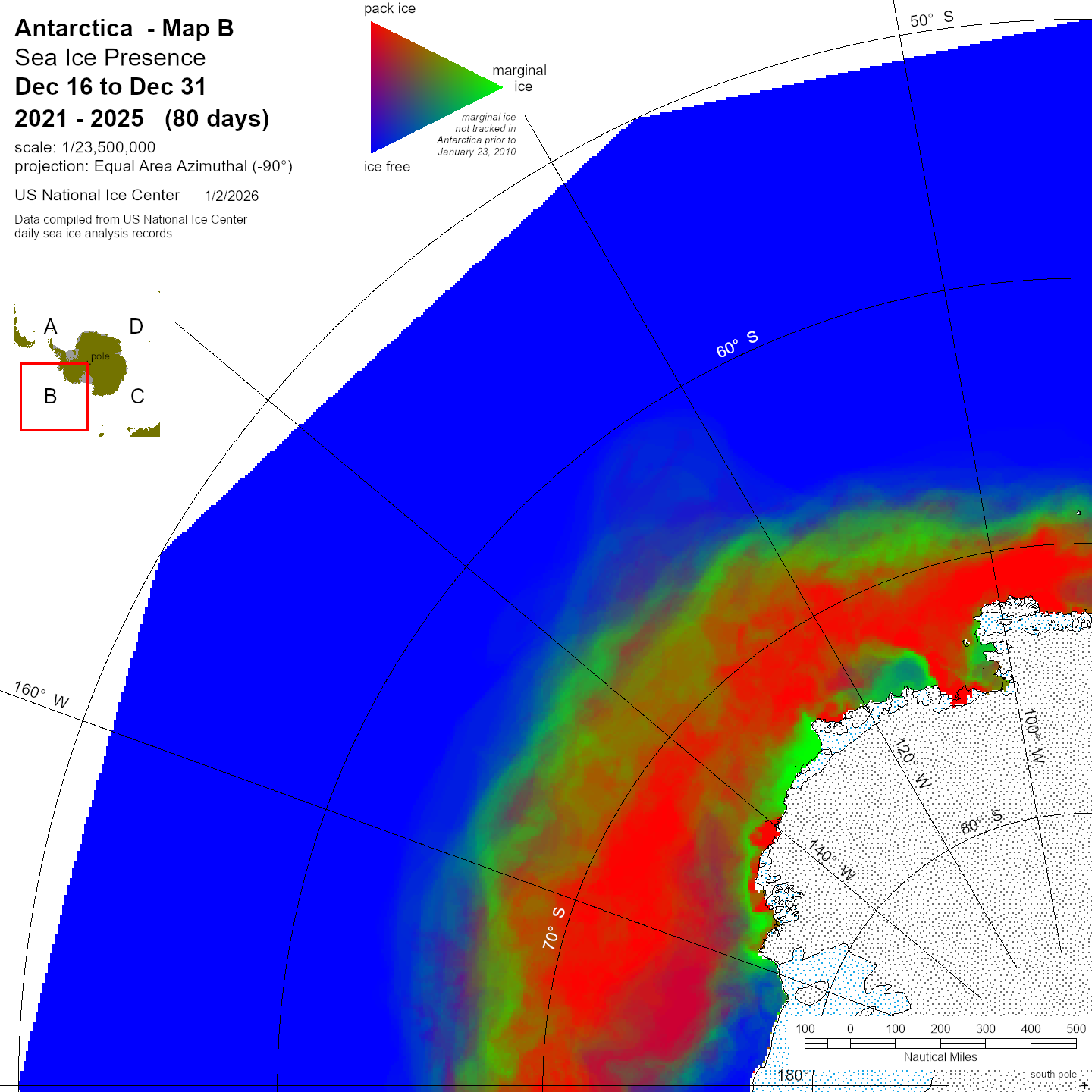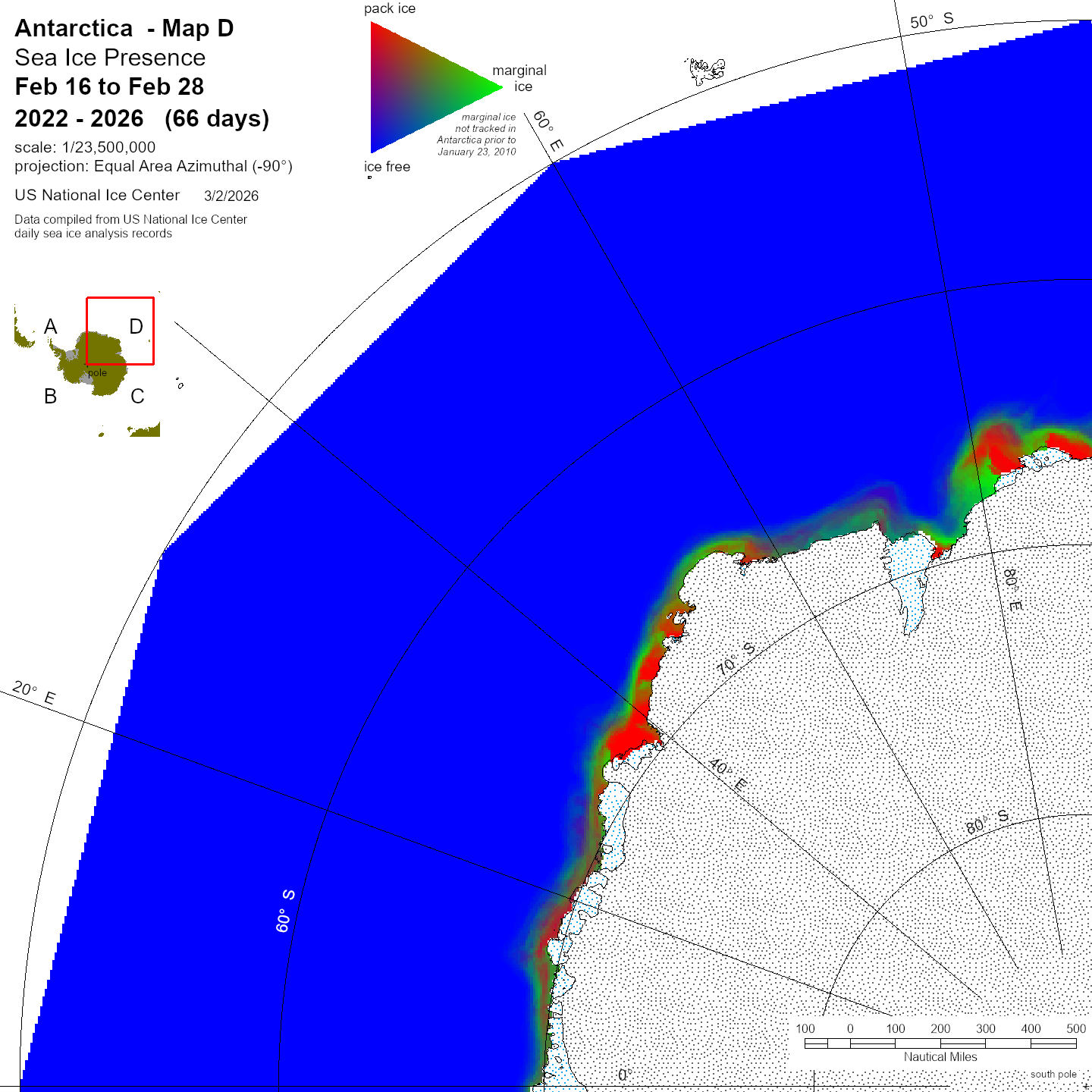KMZ file that covers ice information contained throughout the entire Antarctic region. For color legend, please click here.
