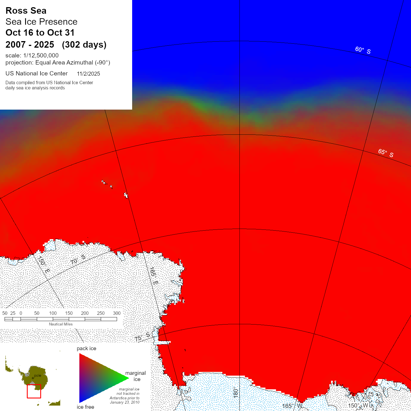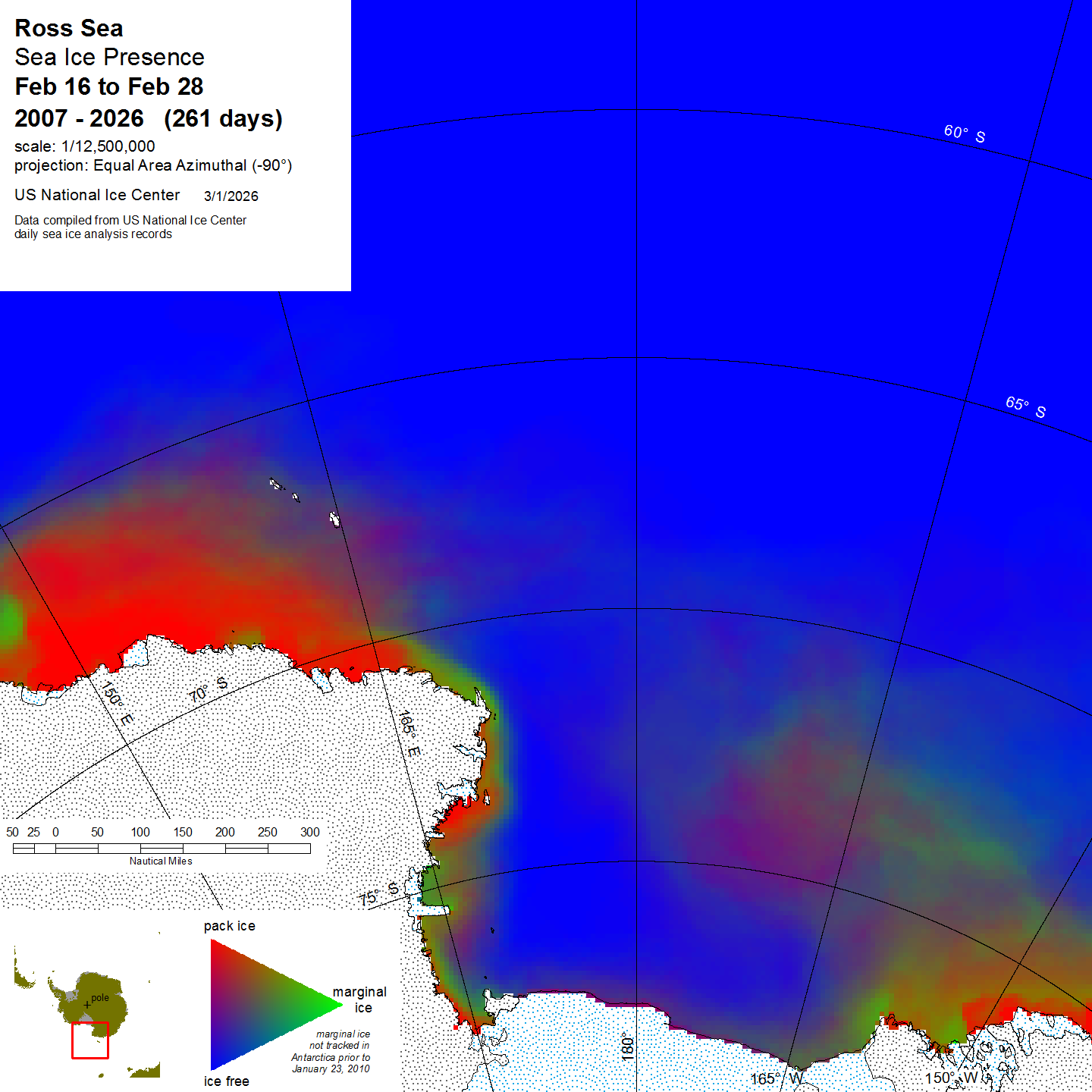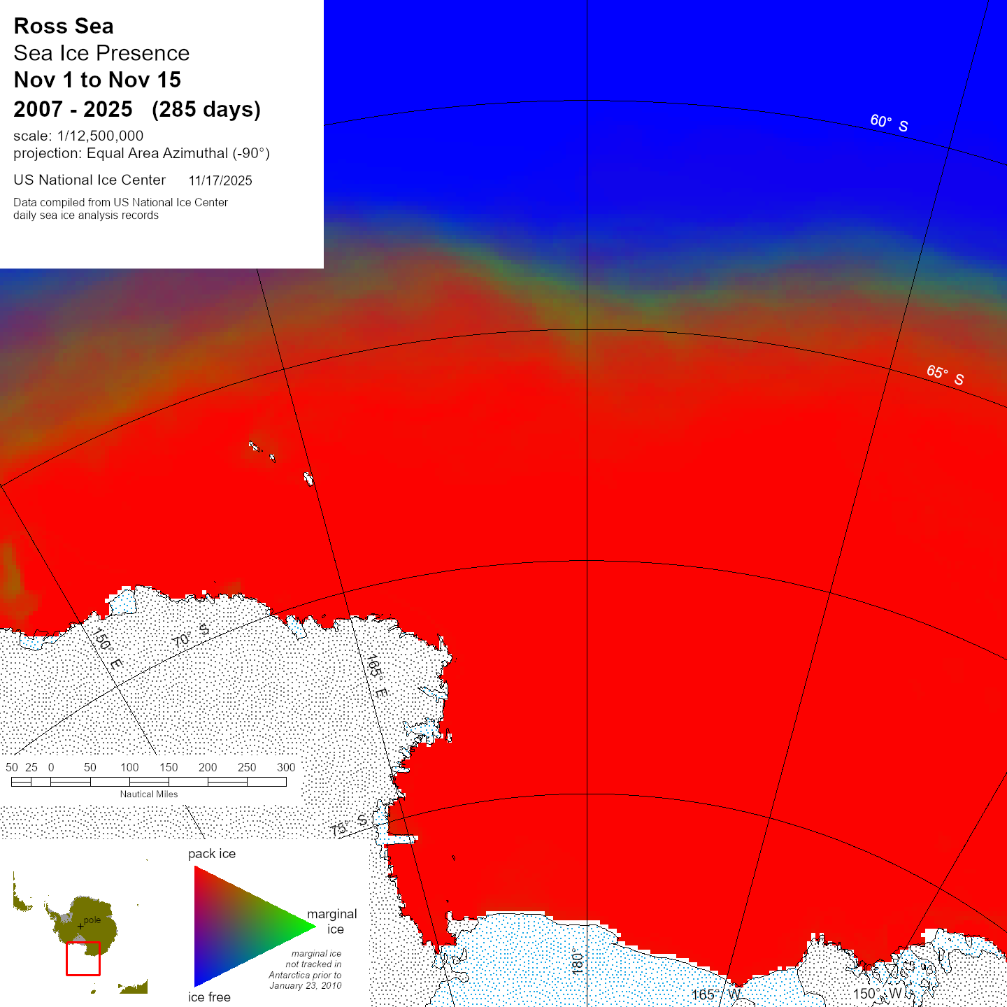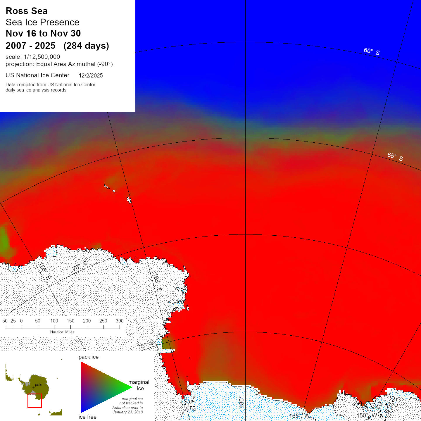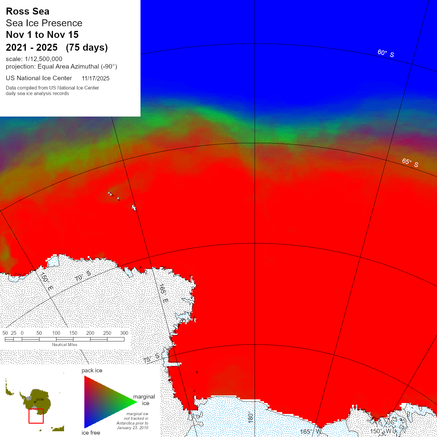 Graphic representation of ice information gathered over a specified time that is contained within the Ross Sea region.