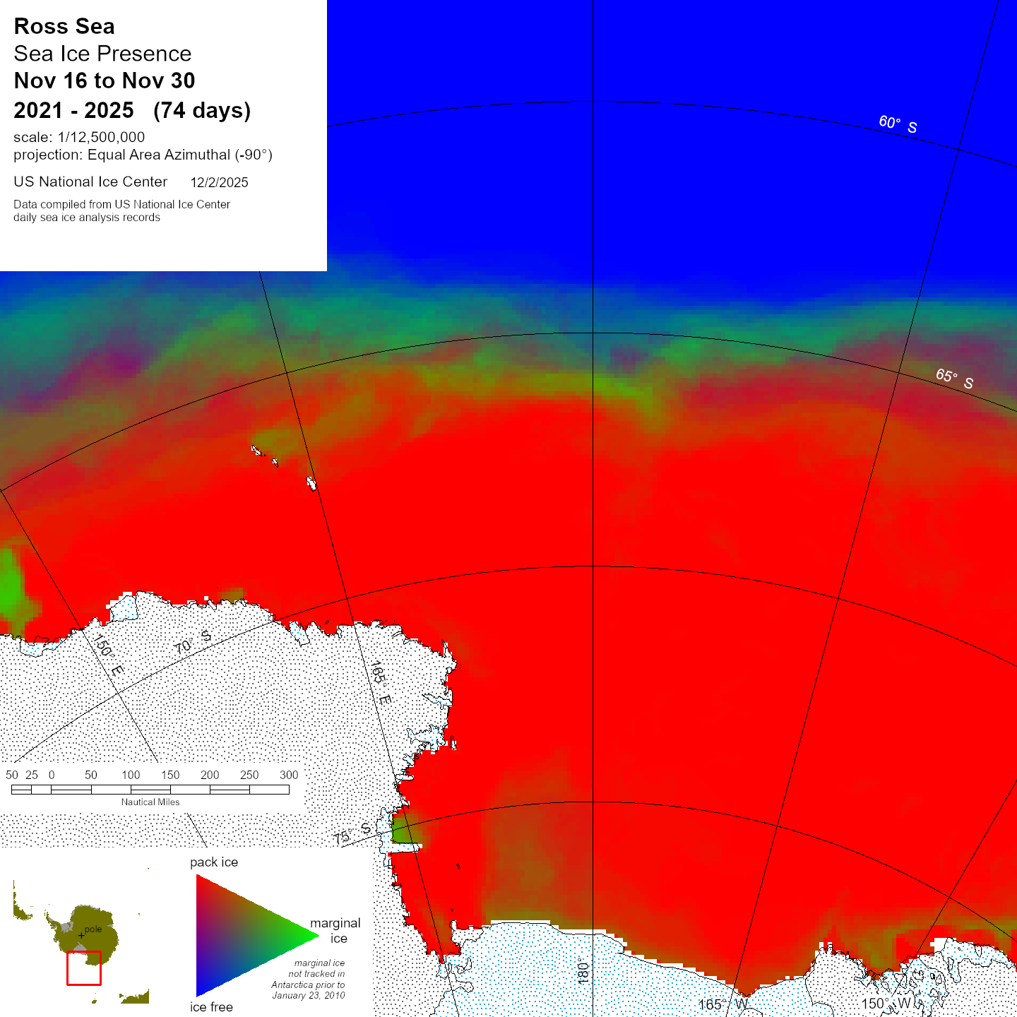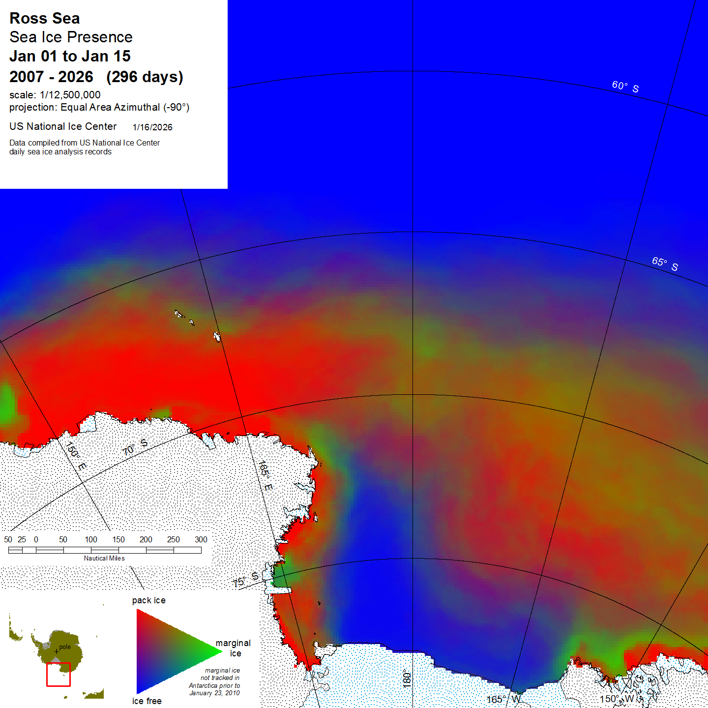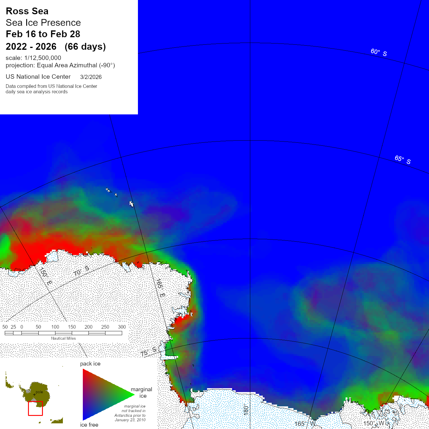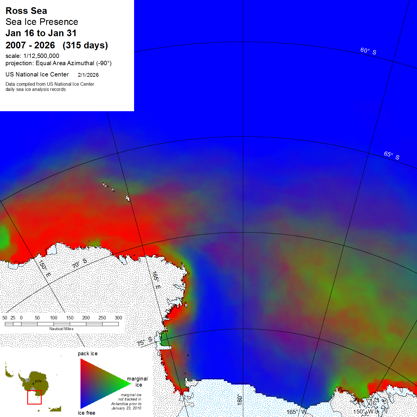 Graphic representation of ice information gathered over a specified time that is contained within the Ross Sea region.