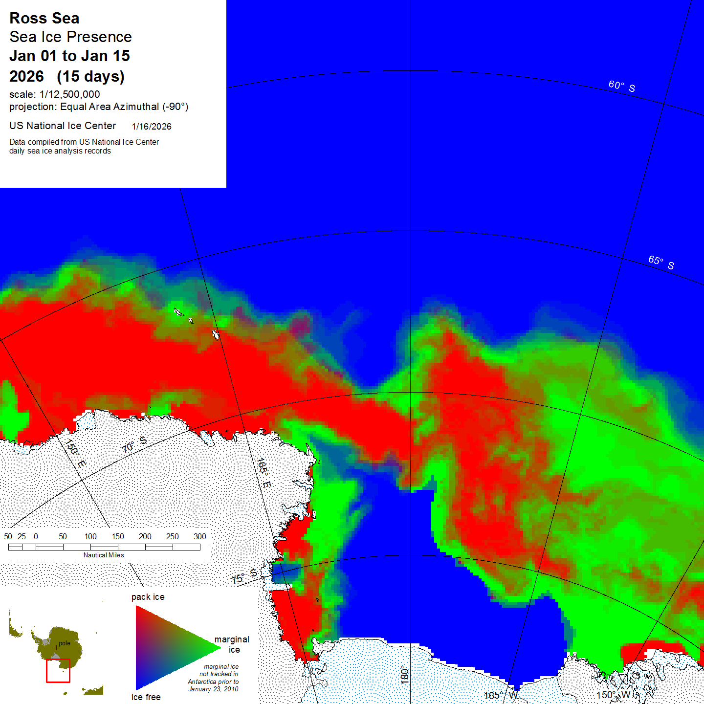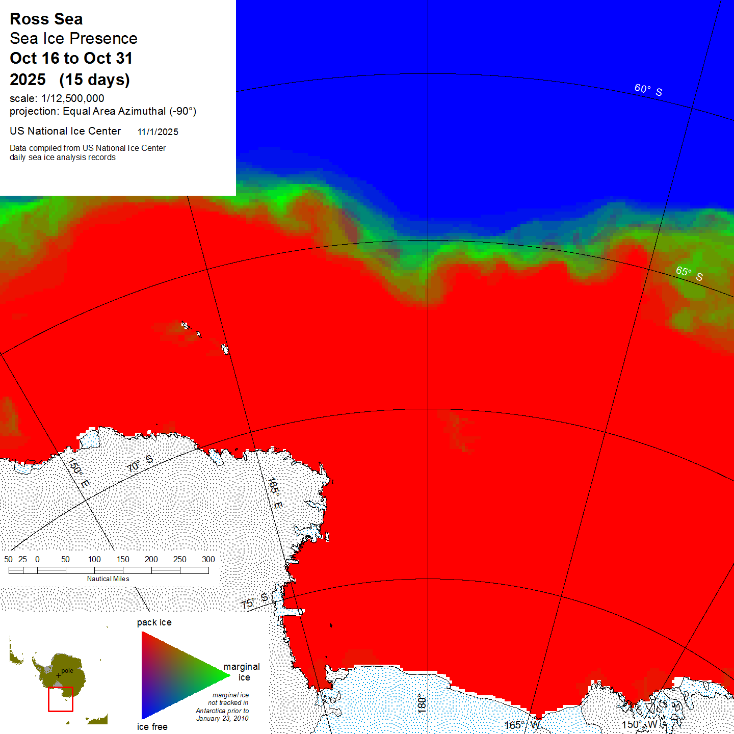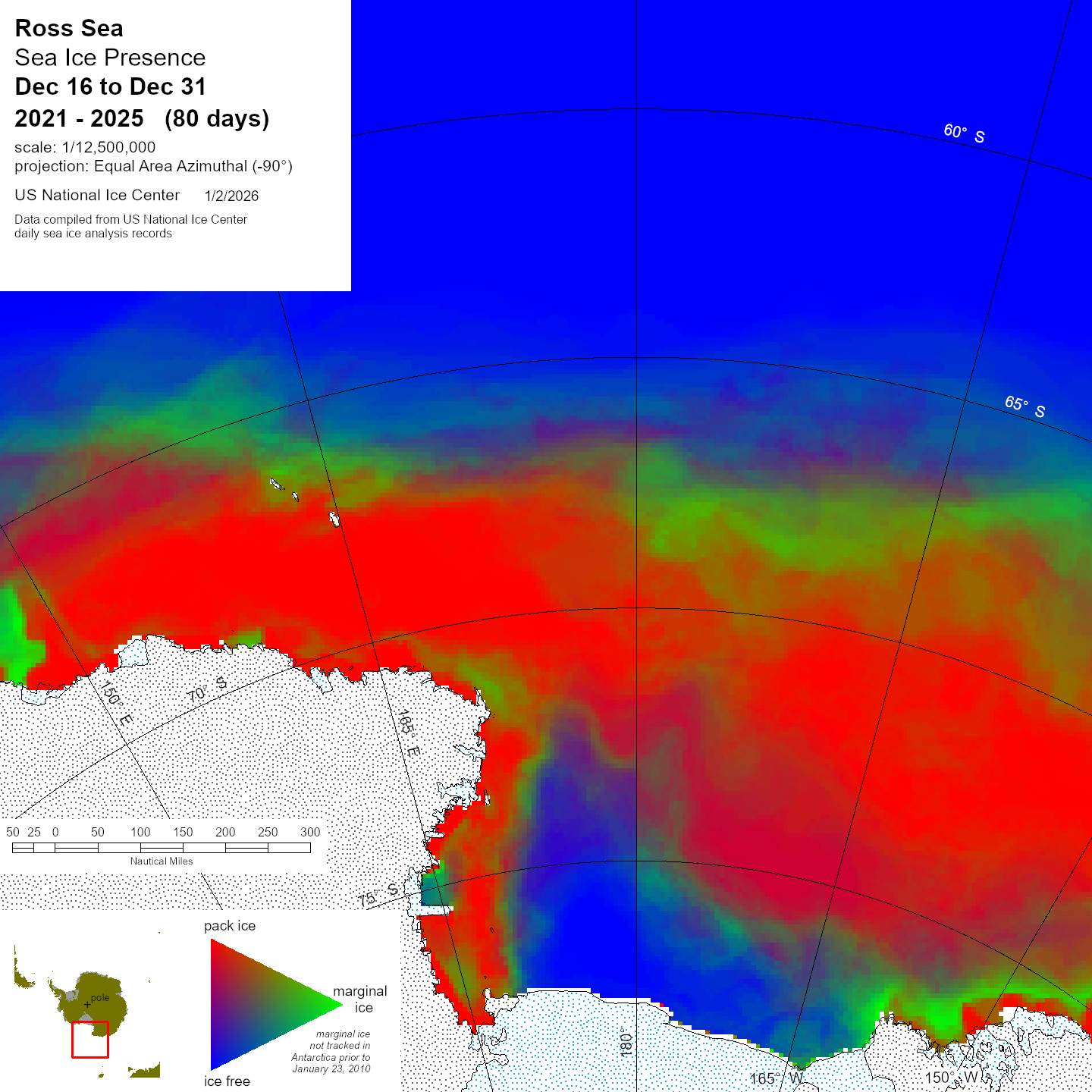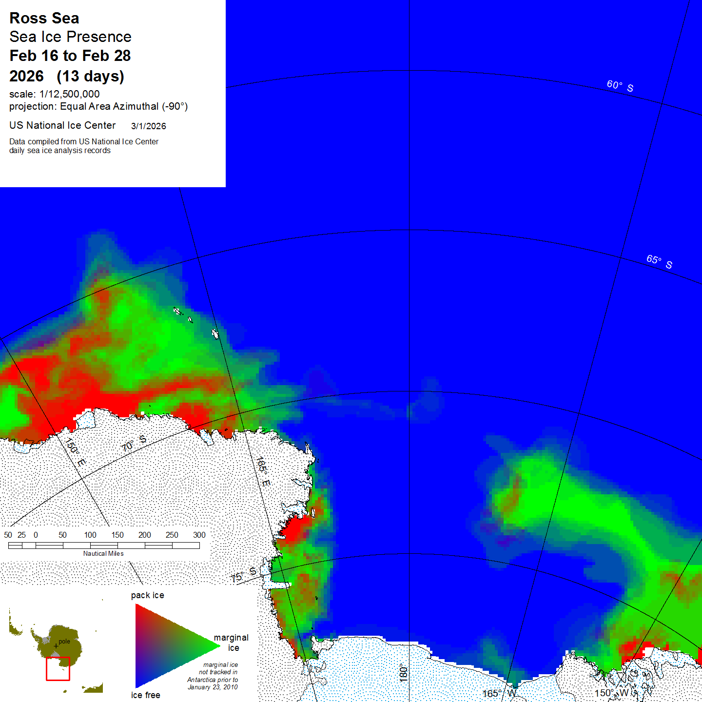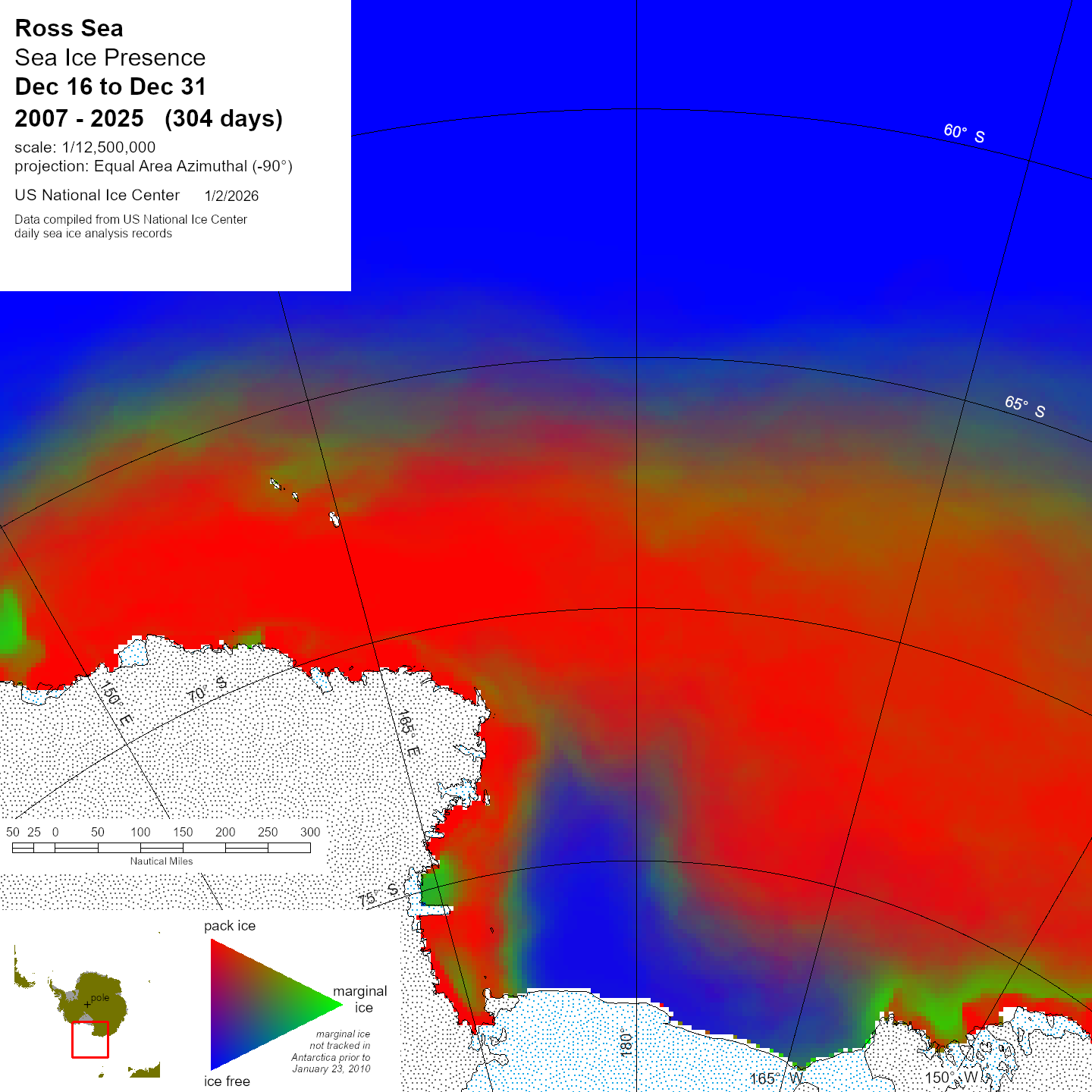 Graphic representation of ice information gathered over a specified time that is contained within the Ross Sea region.