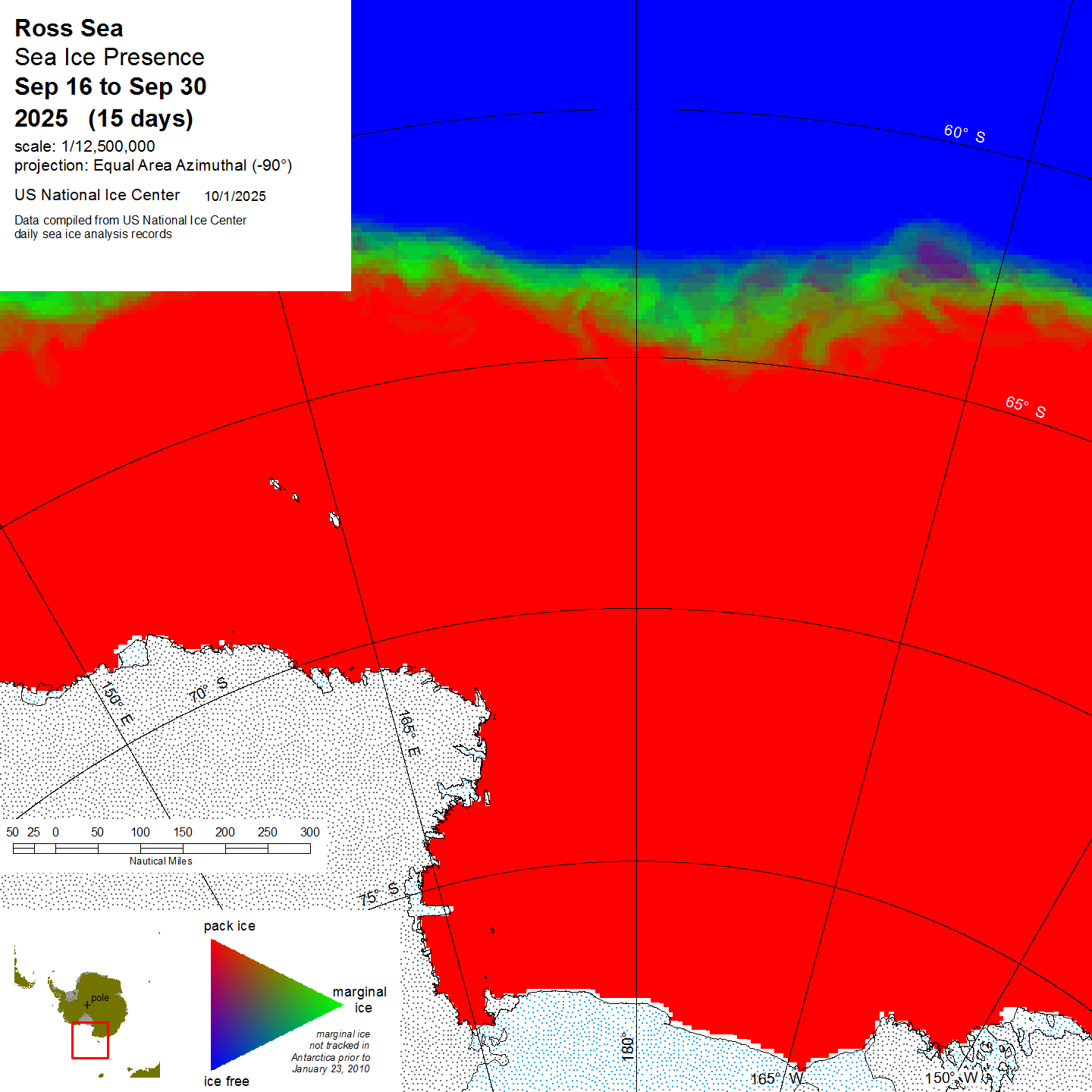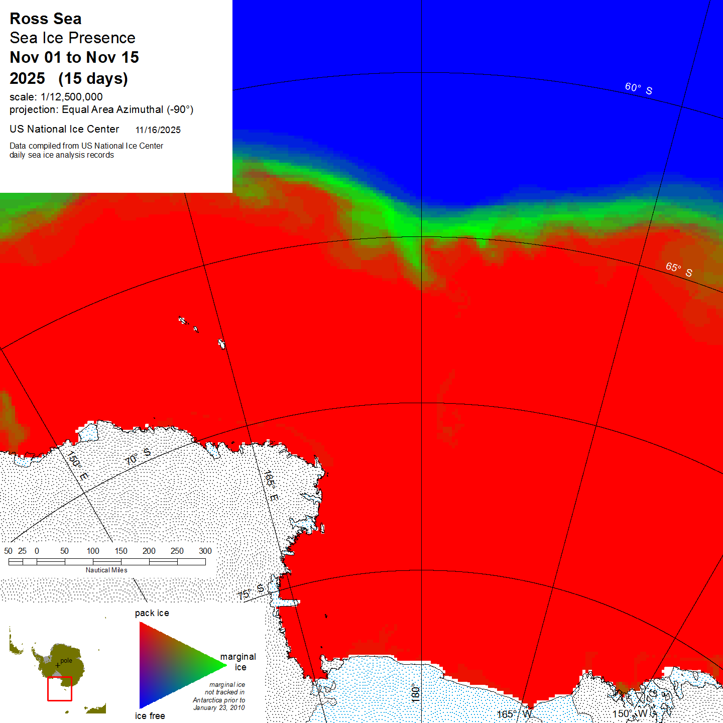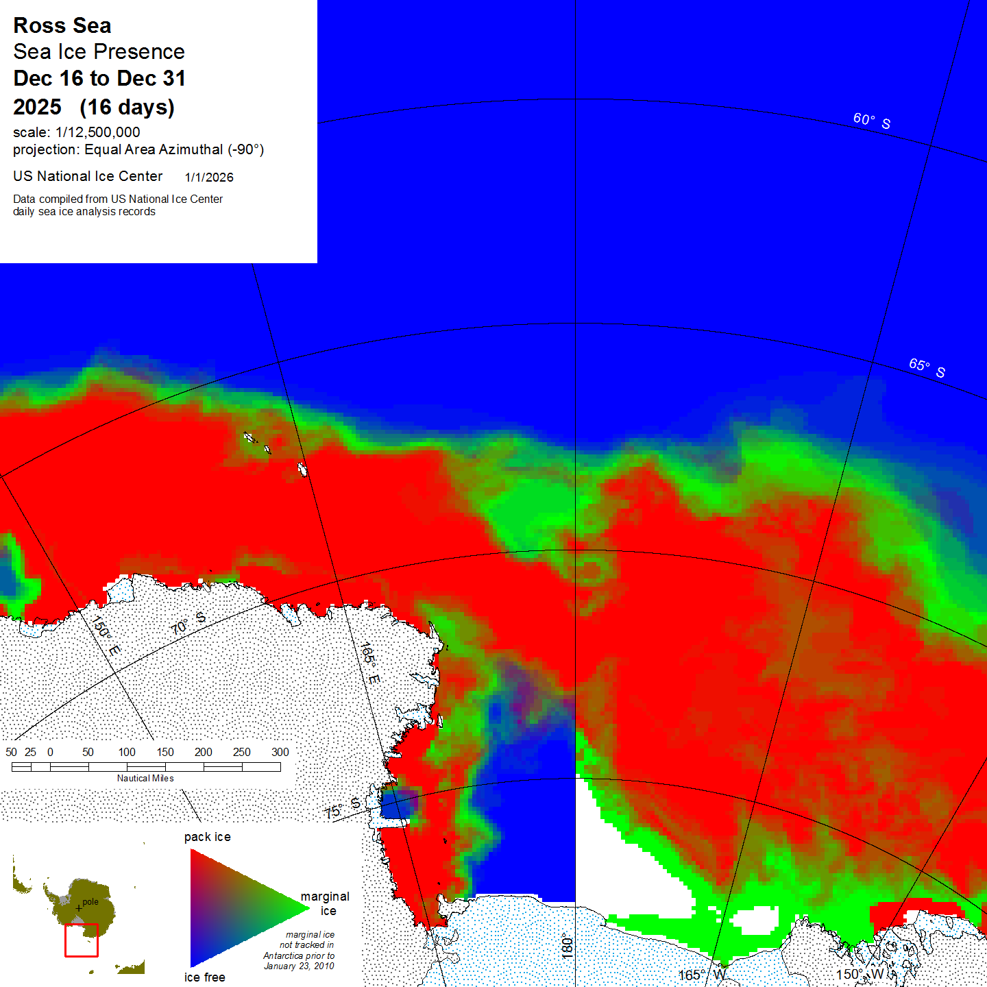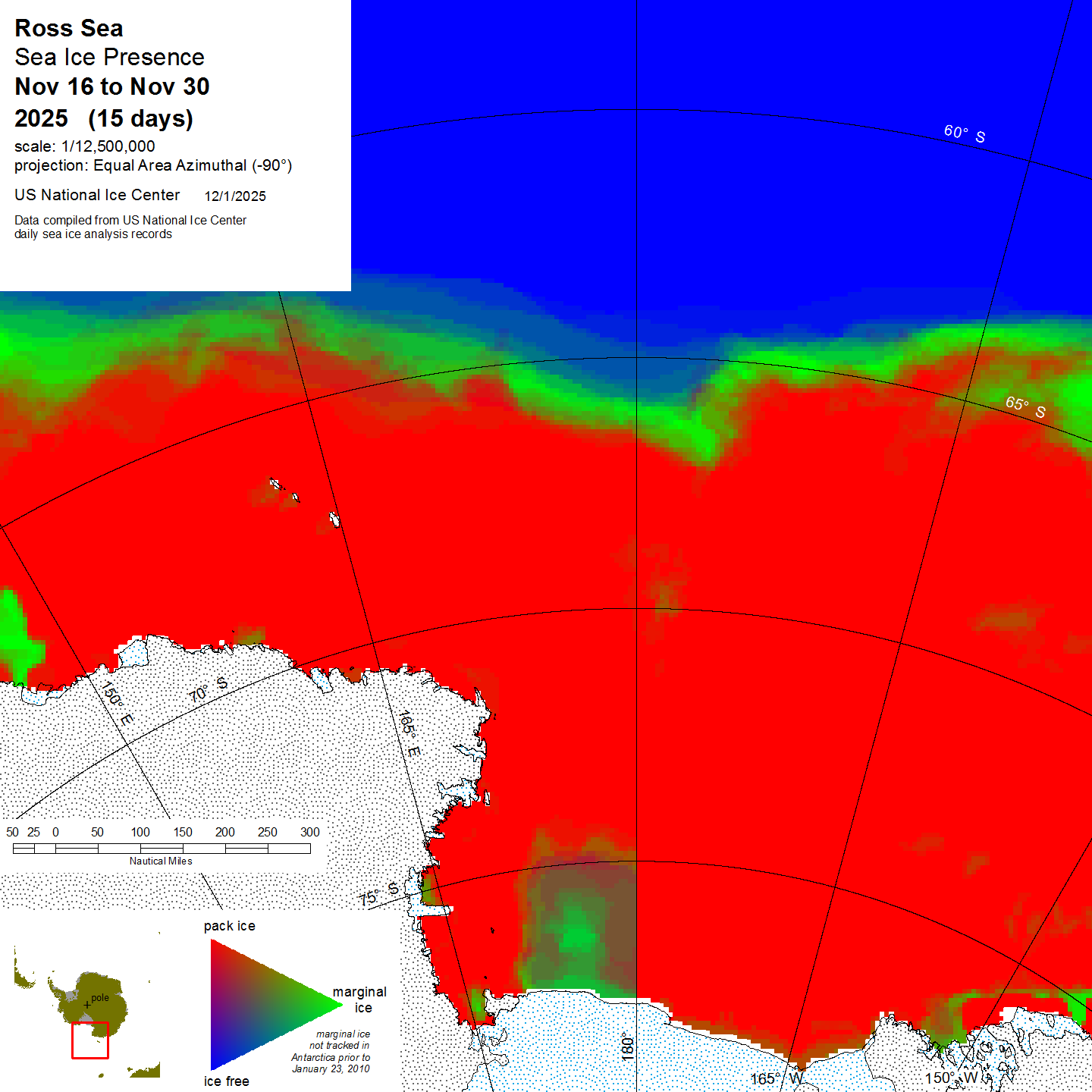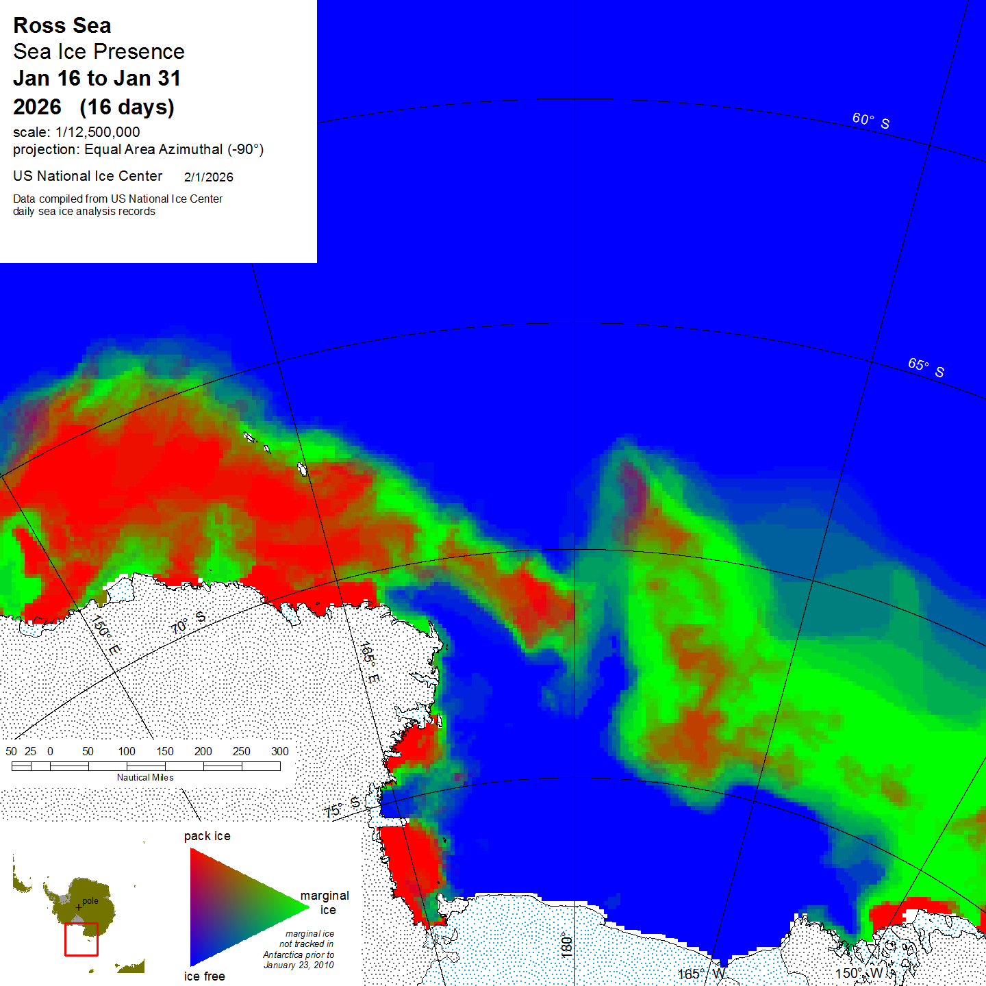 Graphic representation of ice information gathered over a specified time that is contained within the Ross Sea region.