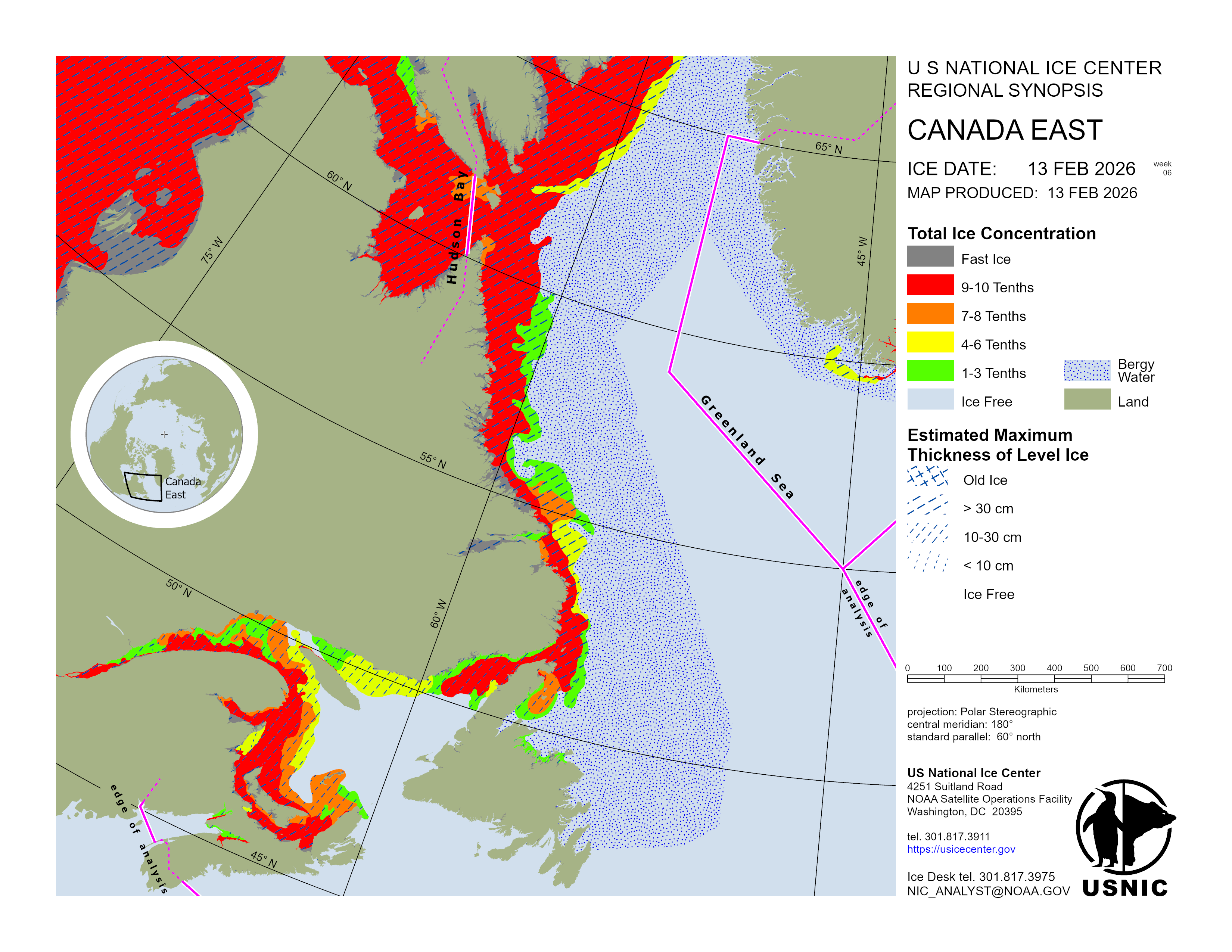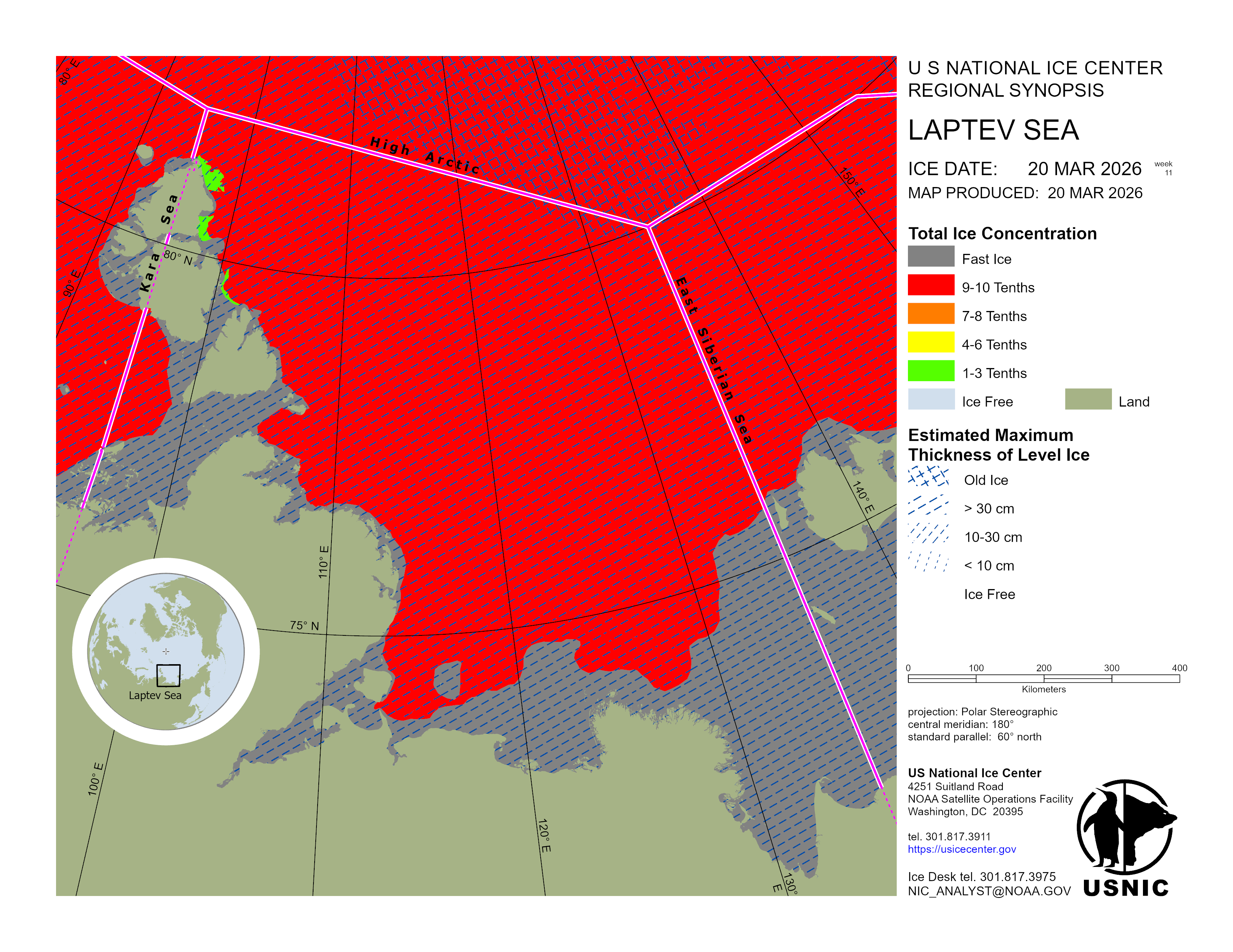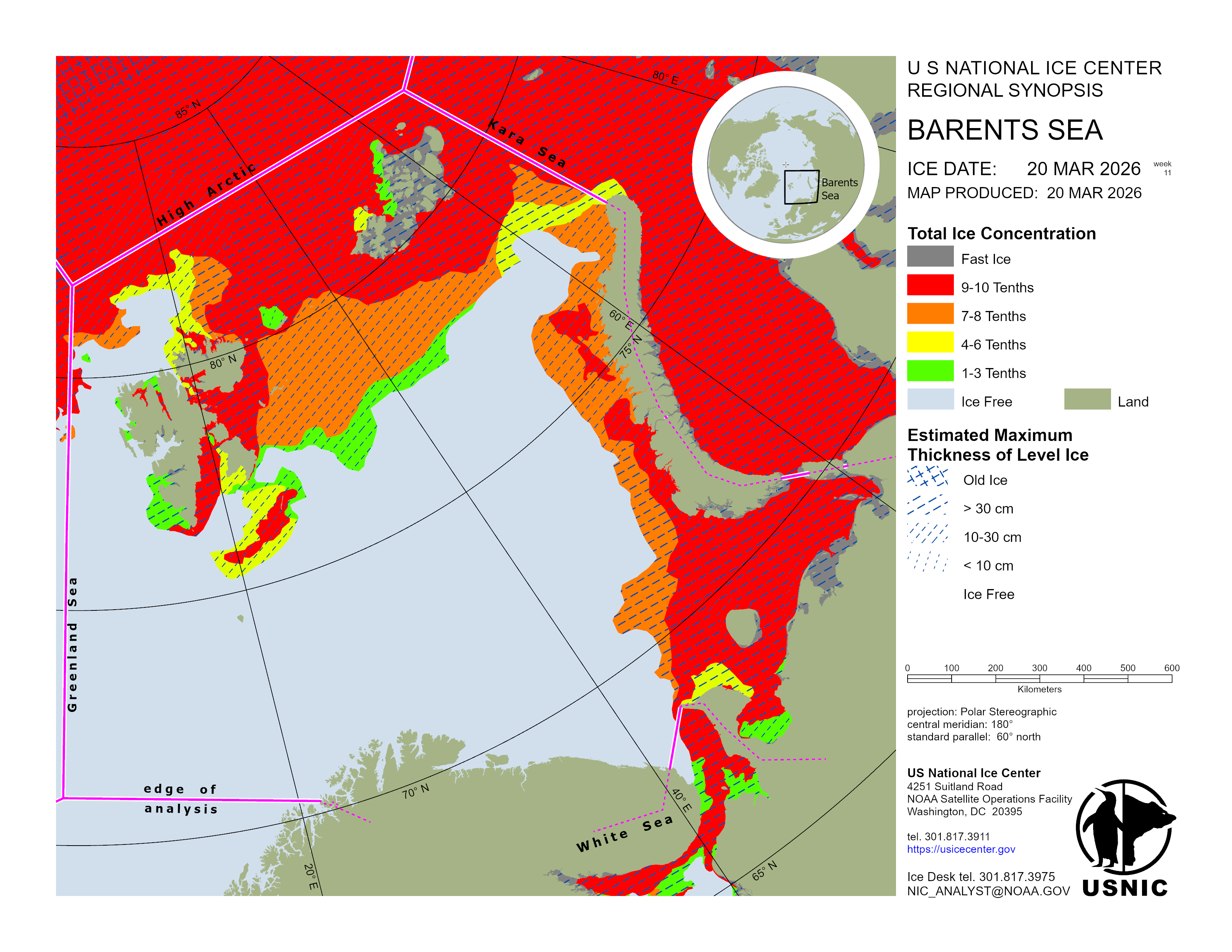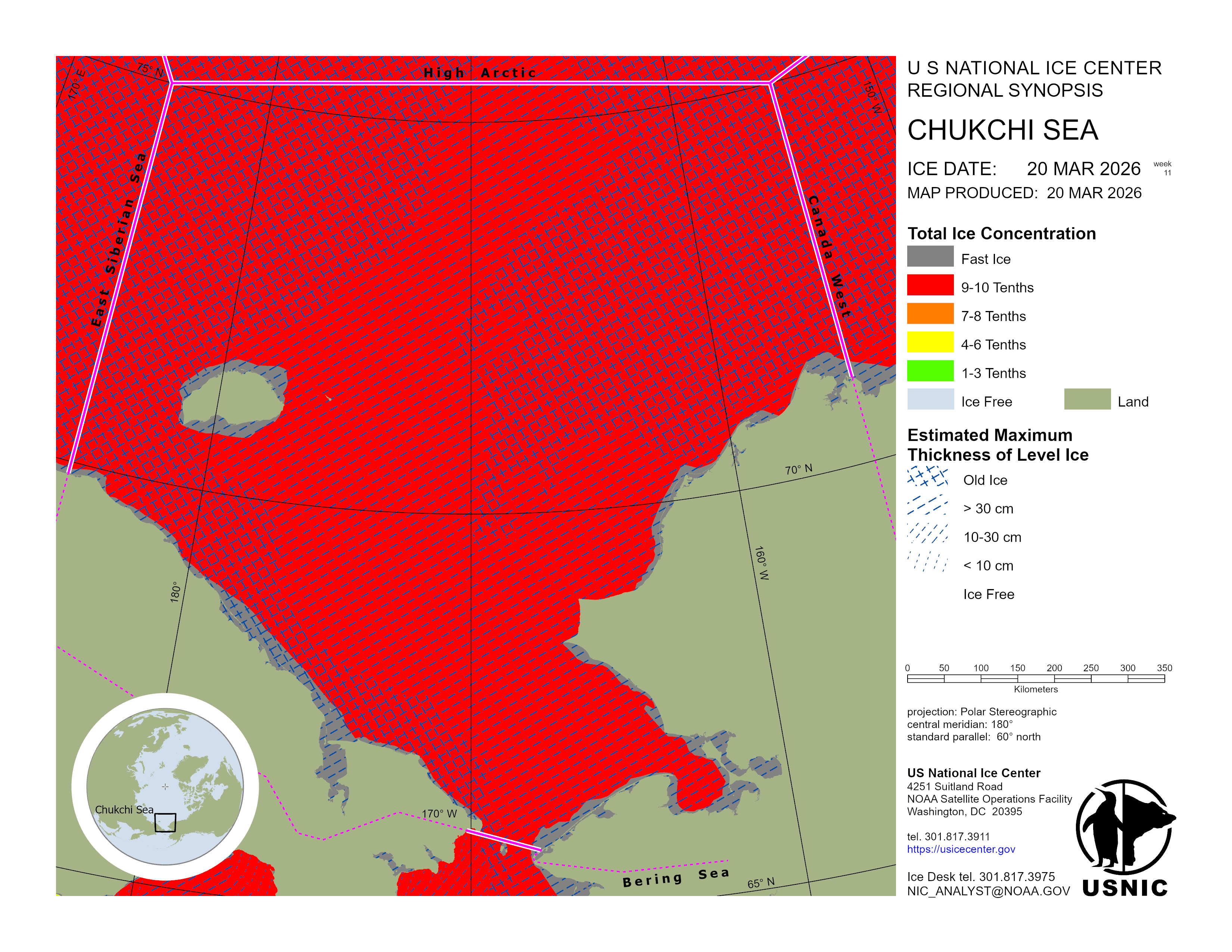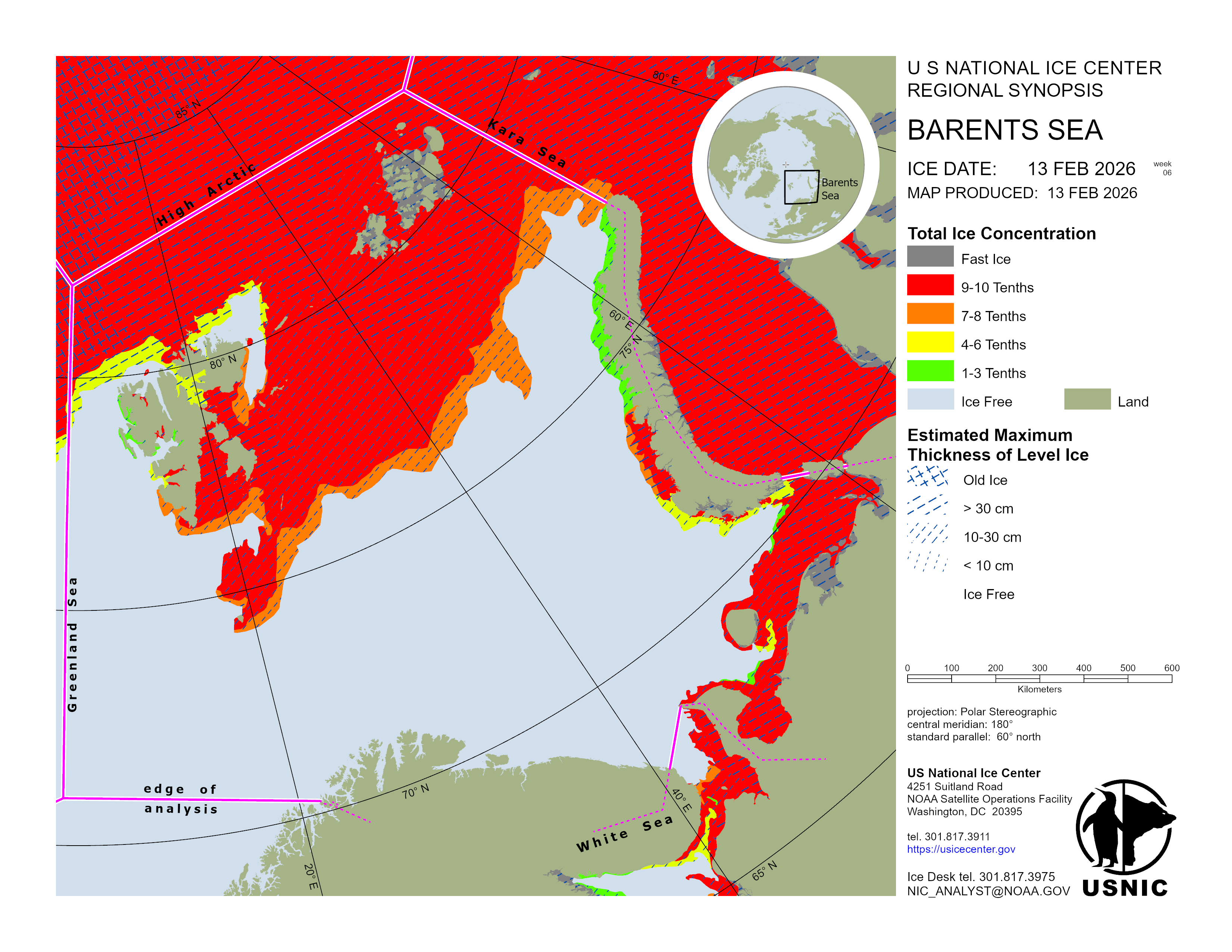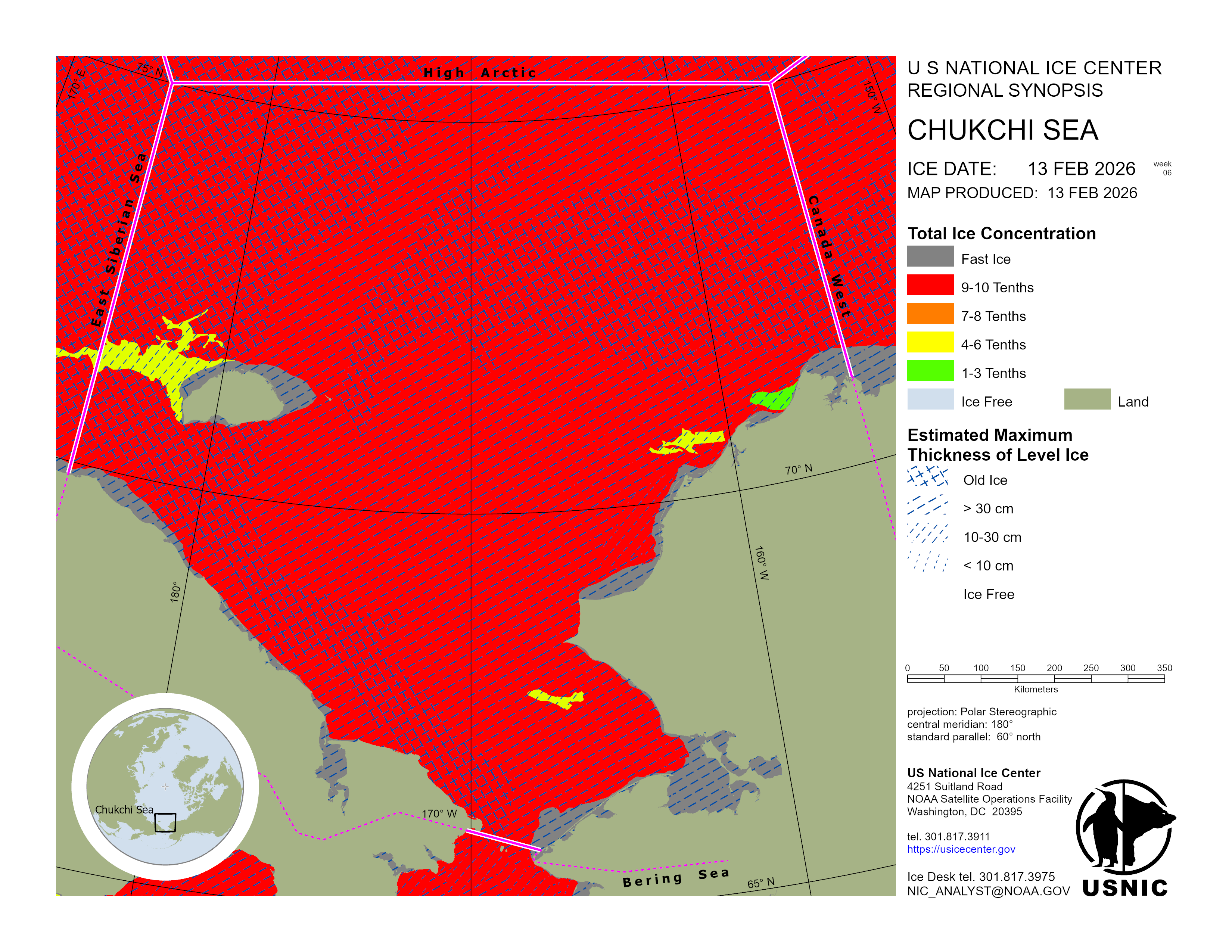 Regional charts and associated synopsis write-up capture ice and environmental conditions throughout the Arctic which are based on the U.S. National Ice Center’s weekly analysis. Charts and synopses are updated weekly on Fridays. Note: Baltic Sea analysis is provided by the Finnish Meteorological Institute. The Canadian Archipelago (Canada East, Canada North, Canada West, and Hudson Bay) analysis is provided by the Canadian Ice Service.