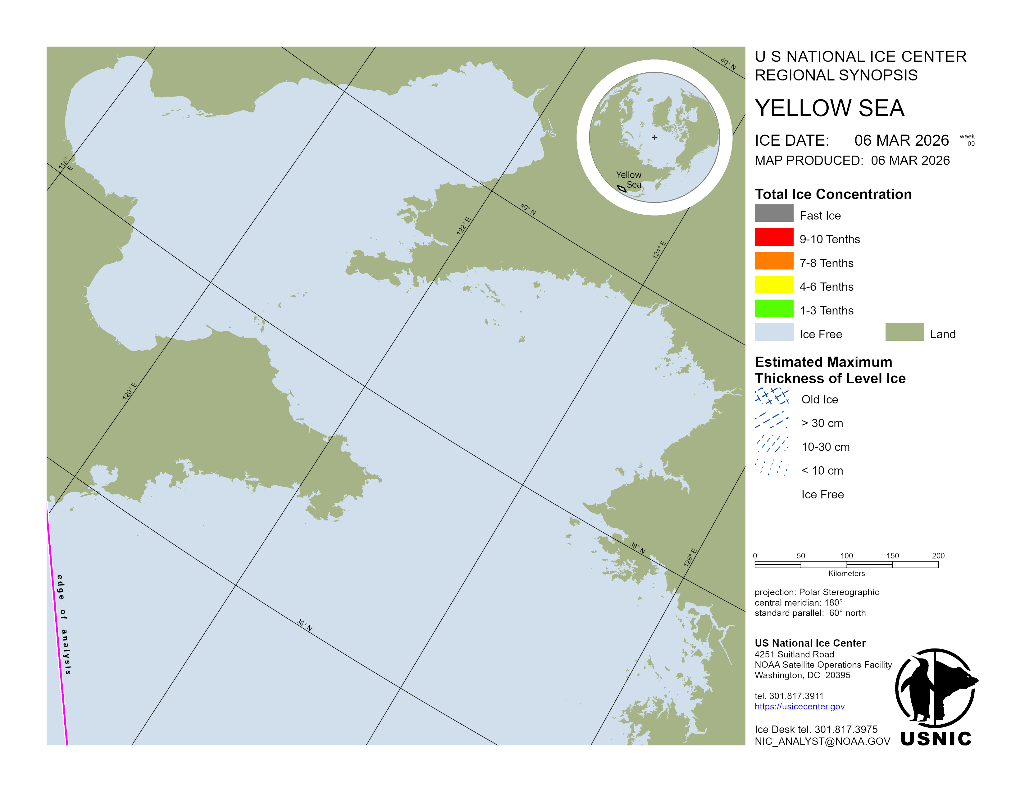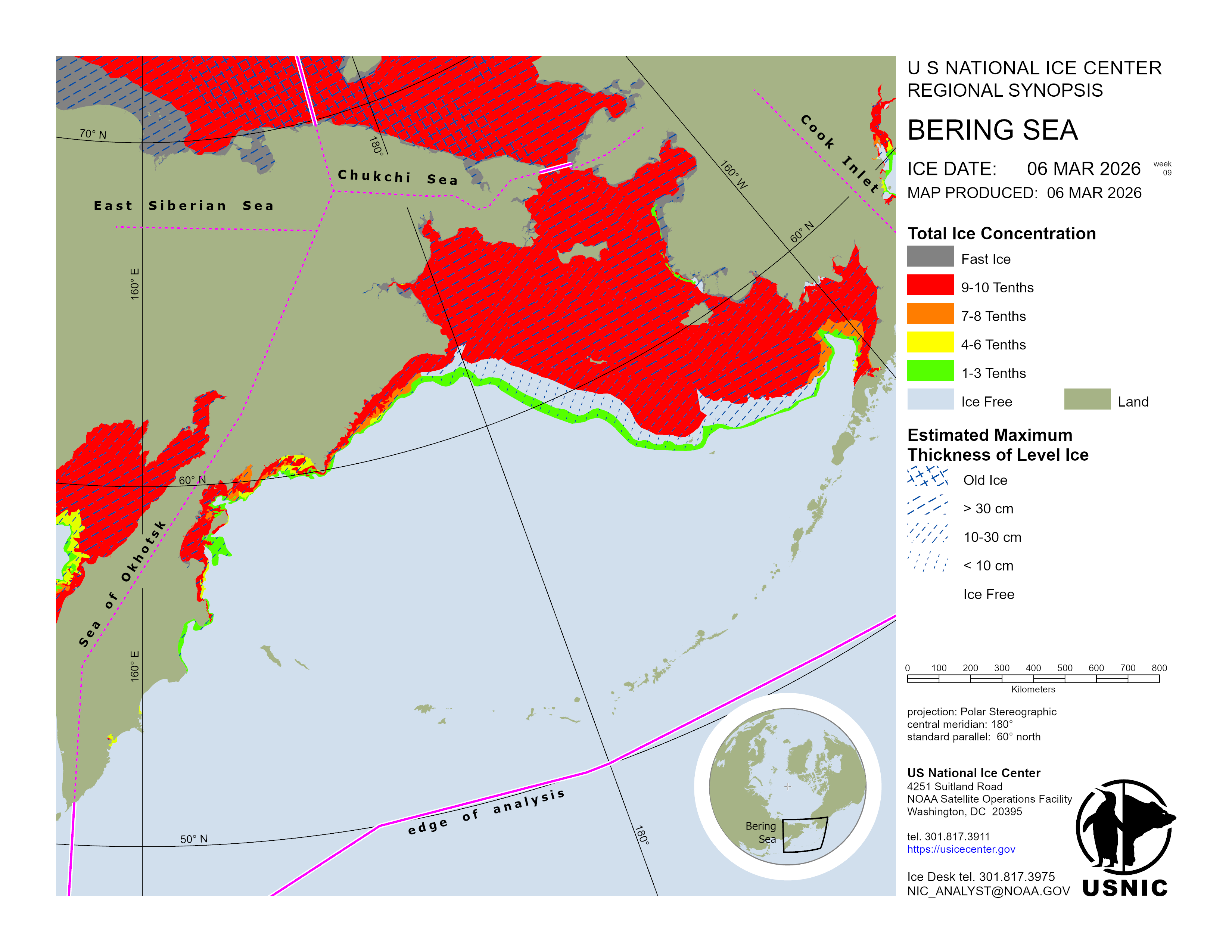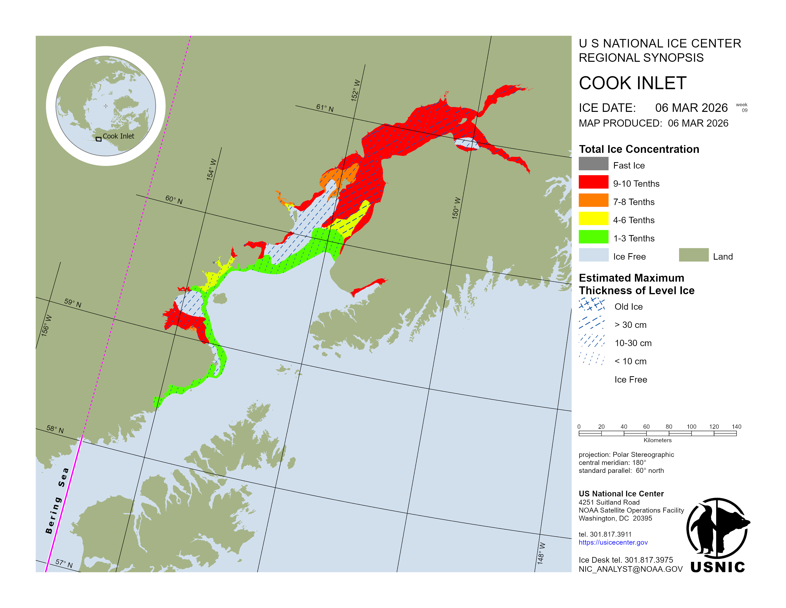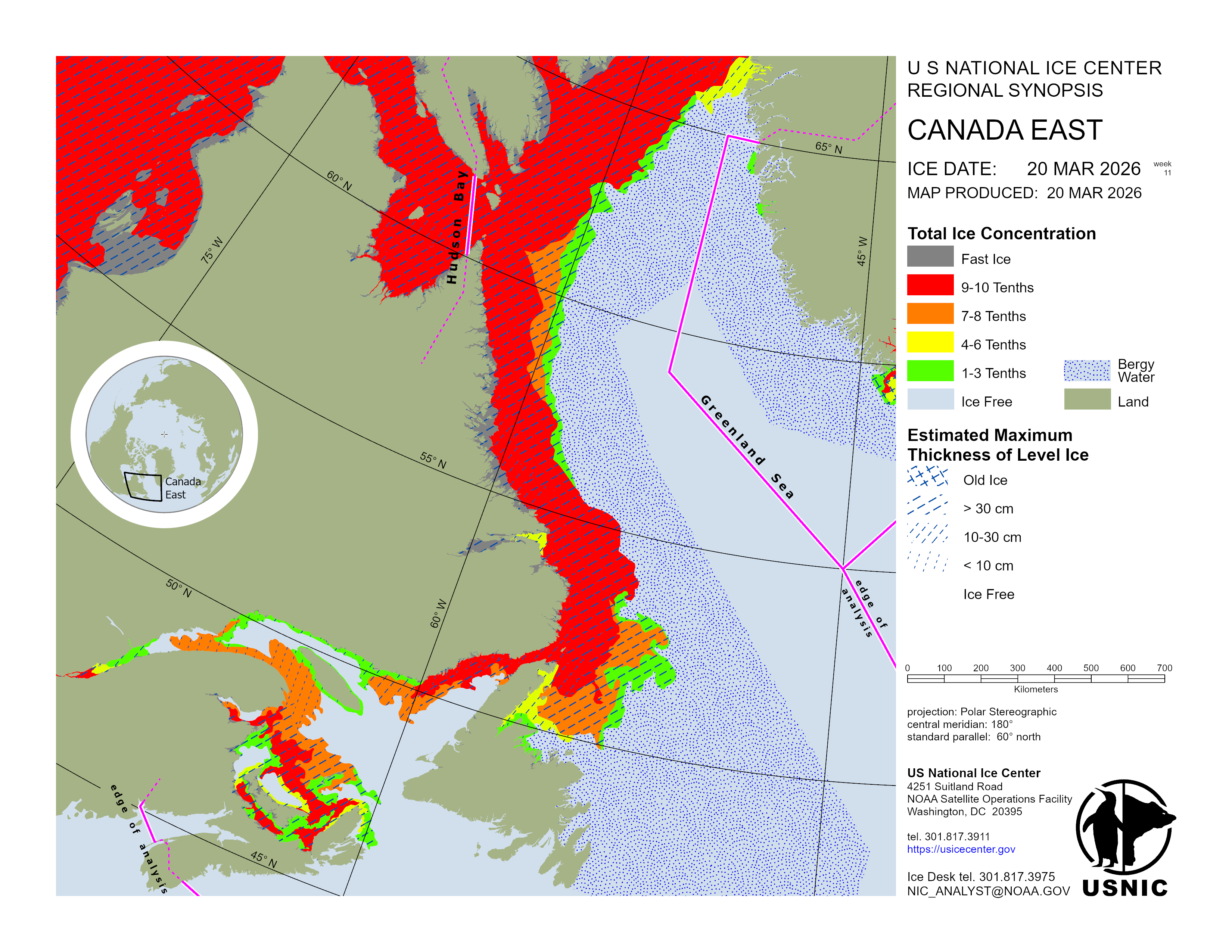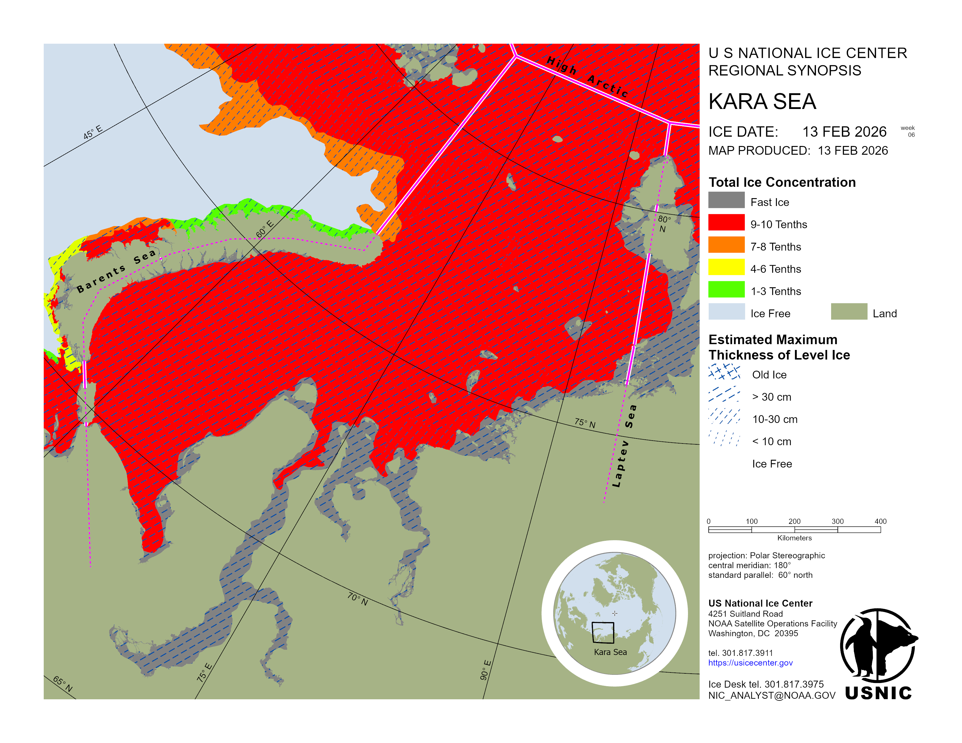 Regional charts and associated synopsis write-up capture ice and environmental conditions throughout the Arctic which are based on the U.S. National Ice Center’s weekly analysis. Charts and synopses are updated weekly on Fridays. Note: Baltic Sea analysis is provided by the Finnish Meteorological Institute. The Canadian Archipelago (Canada East, Canada North, Canada West, and Hudson Bay) analysis is provided by the Canadian Ice Service.
