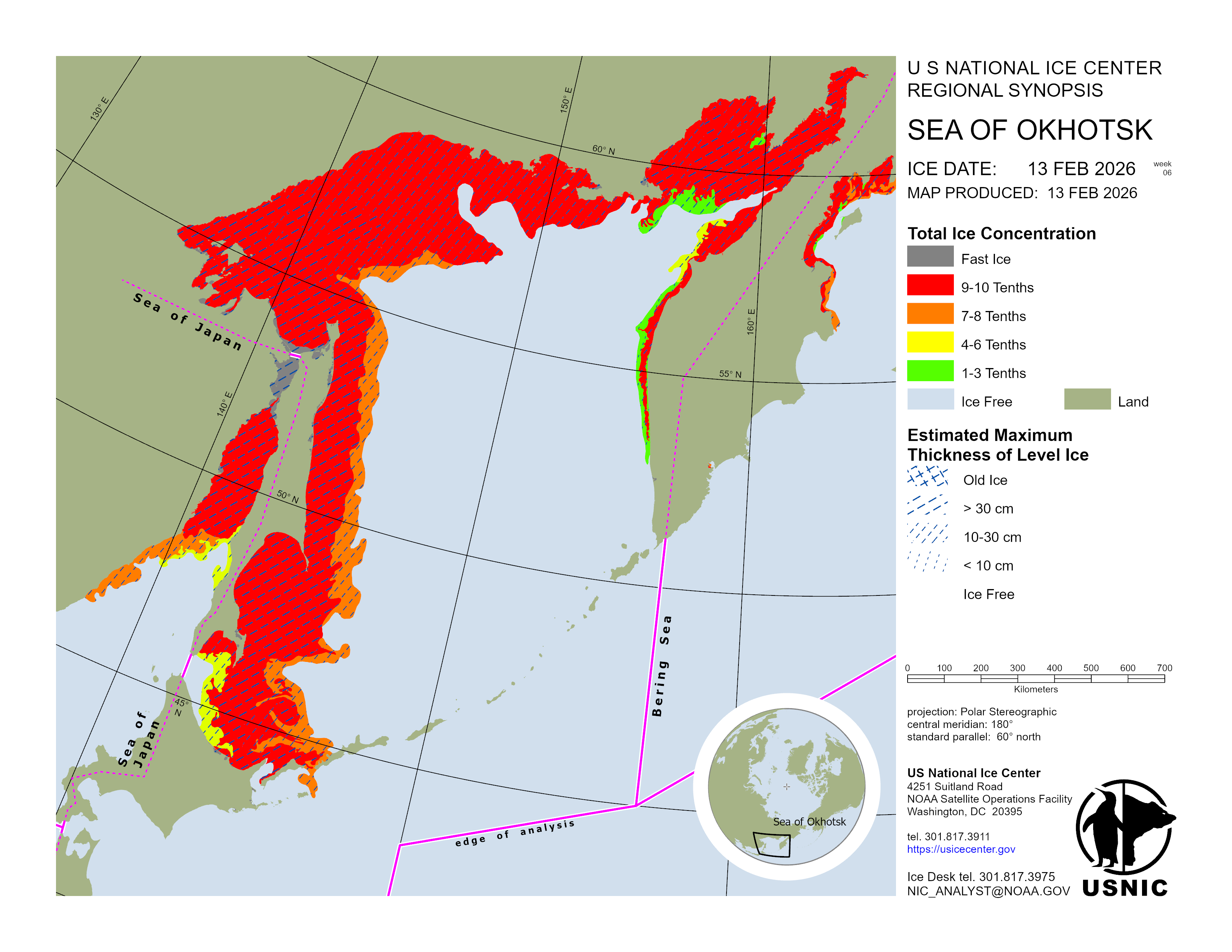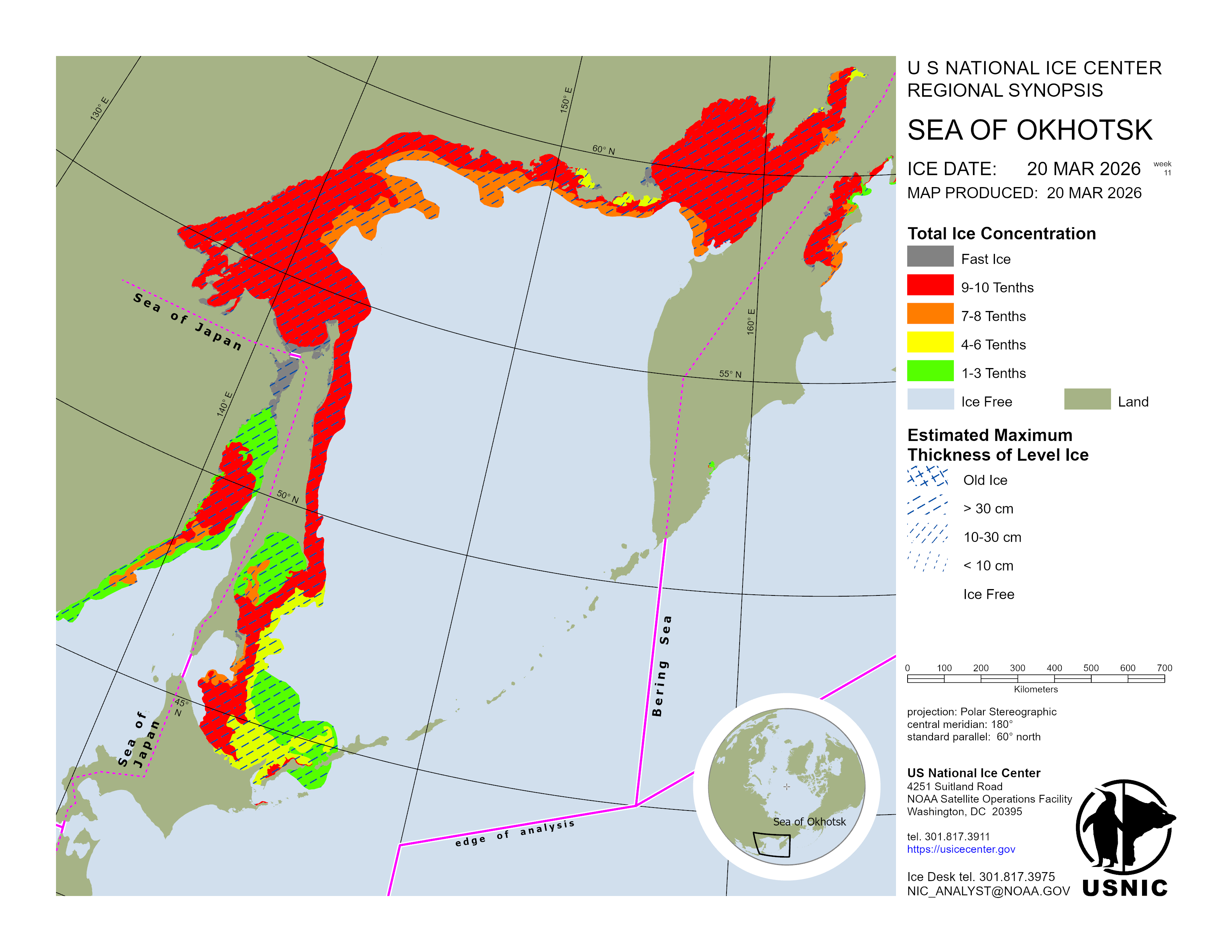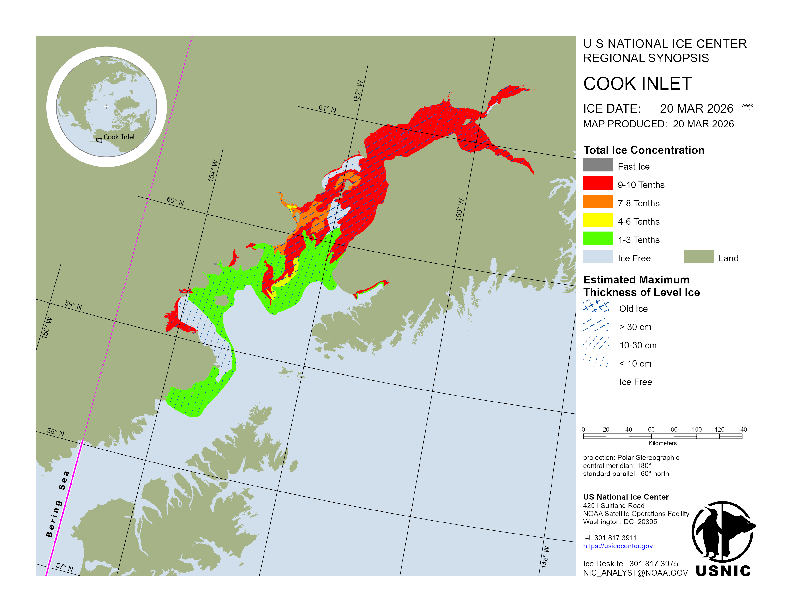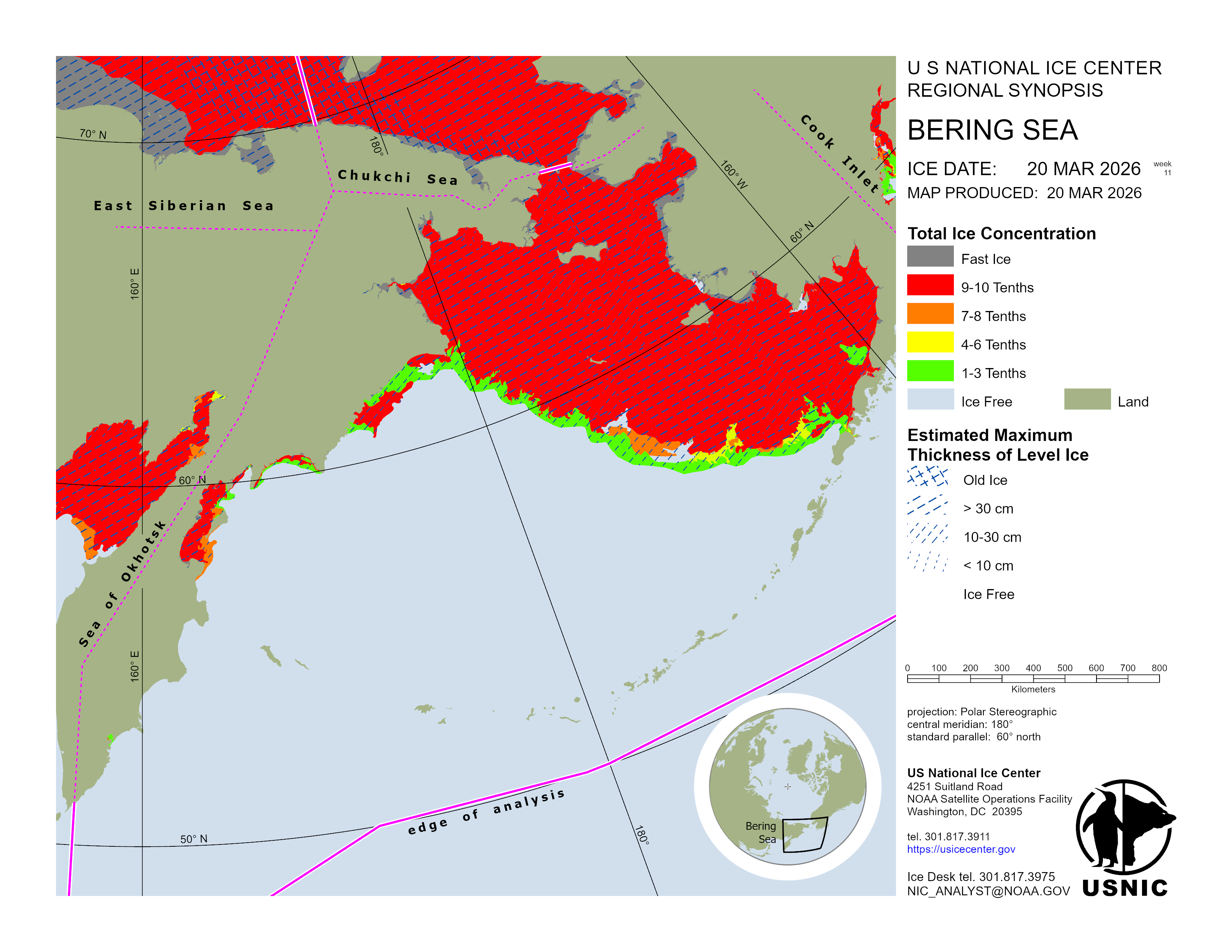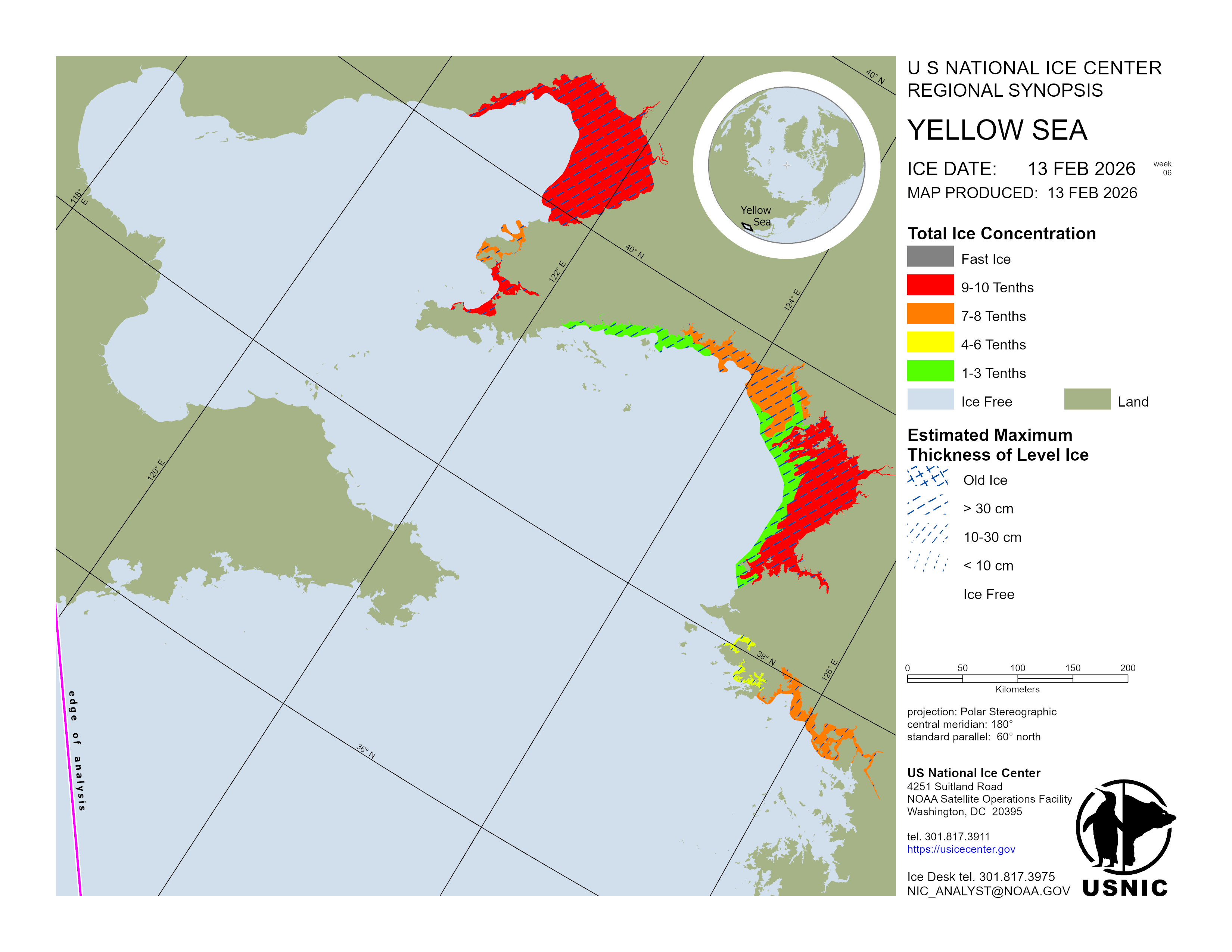 Regional charts and associated synopsis write-up capture ice and environmental conditions throughout the Arctic which are based on the U.S. National Ice Center’s weekly analysis. Charts and synopses are updated weekly on Fridays. Note: Baltic Sea analysis is provided by the Finnish Meteorological Institute. The Canadian Archipelago (Canada East, Canada North, Canada West, and Hudson Bay) analysis is provided by the Canadian Ice Service.