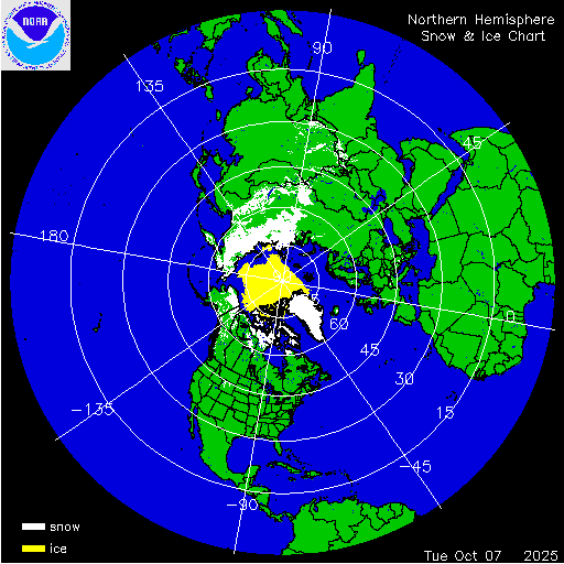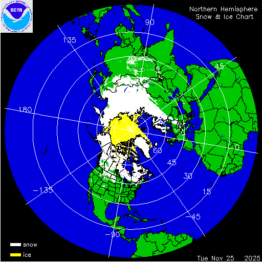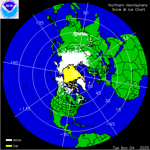 Daily chart that represents the current snow and ice conditions for the entire Northern Hemisphere.