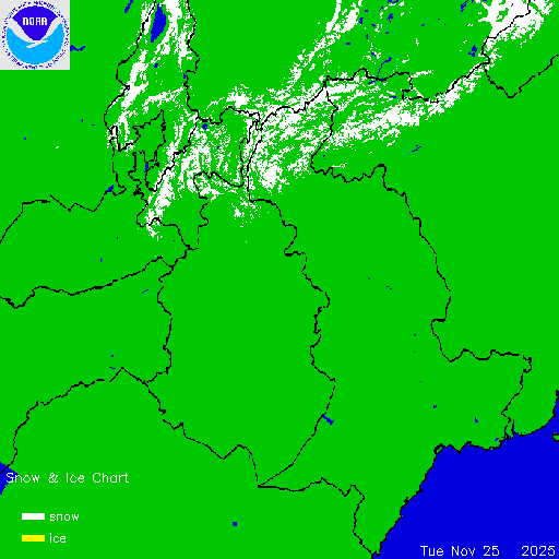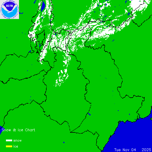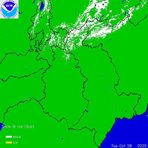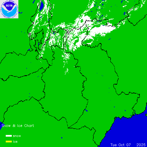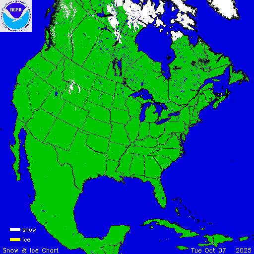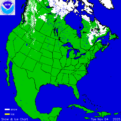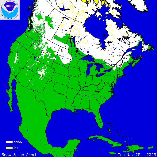 Daily chart that represents the current snow and ice conditions that concentrates on North America / USA region.