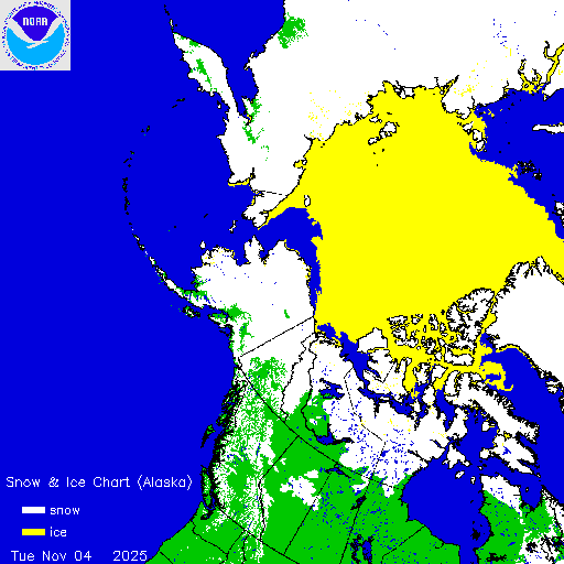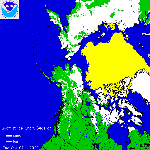 Daily chart that represents the current snow and ice conditions that concentrates on Alaska, Northern Pacific and Arctic regions.